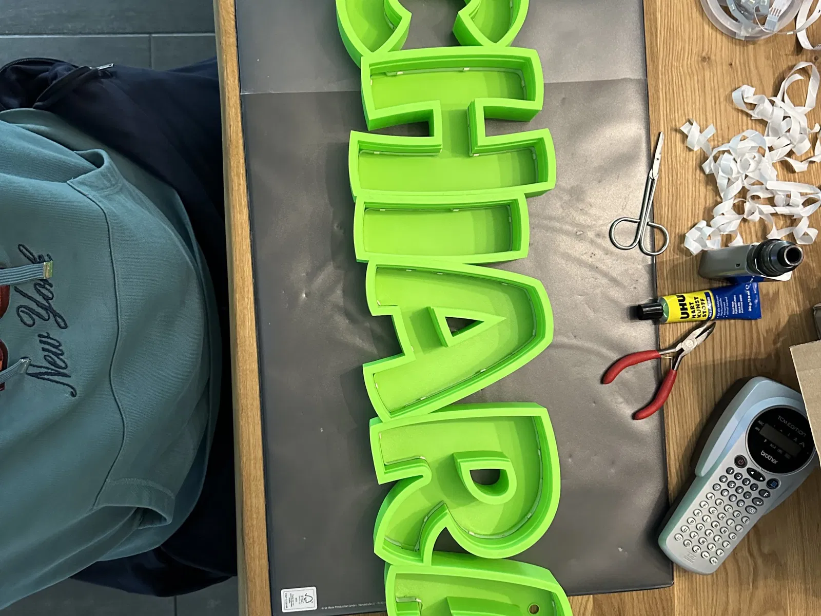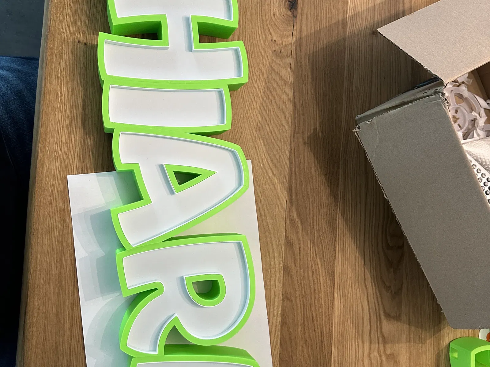 Chiara như một đèn tên LED có thể in. In từng chữ cái riêng lẻ, để dán cùng với cáp tổng thể