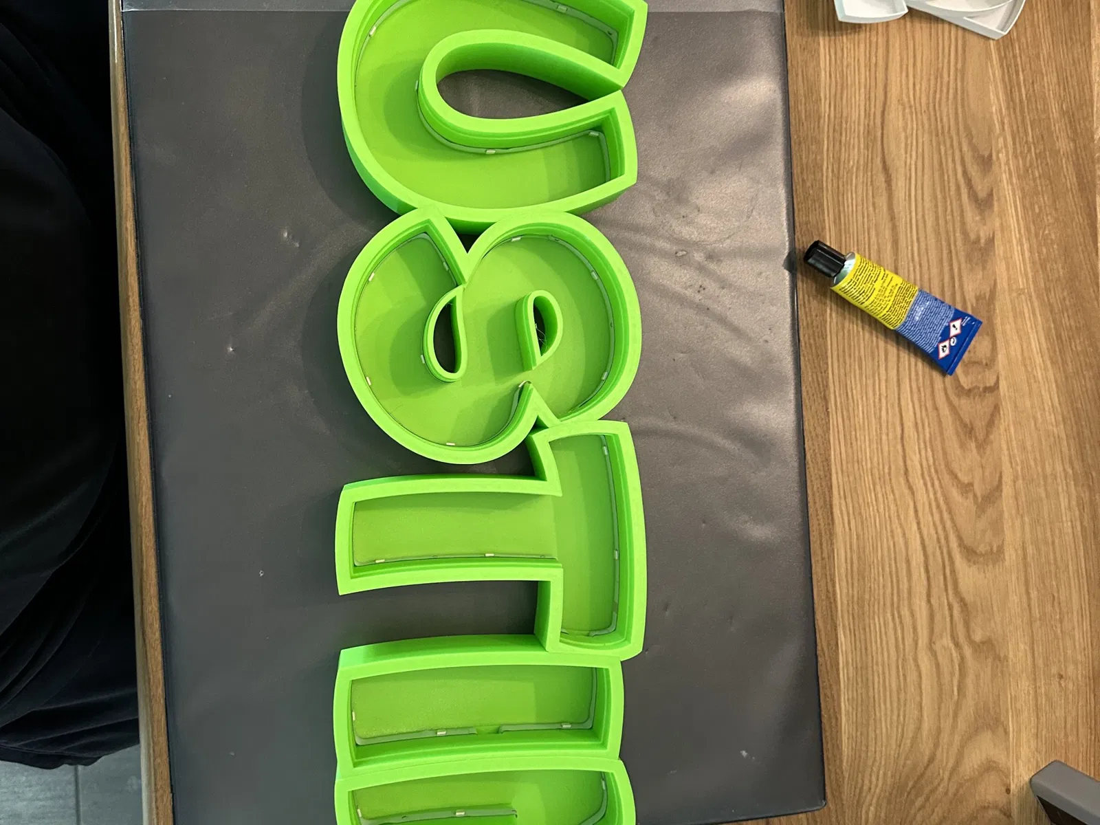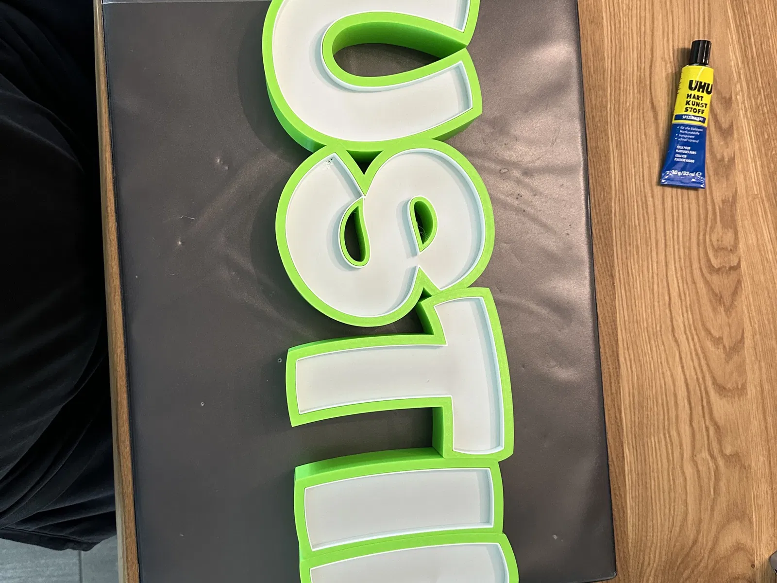 Justin như một đèn tên LED có thể in. In từng chữ cái riêng lẻ, để dán cùng với cáp tổng thể