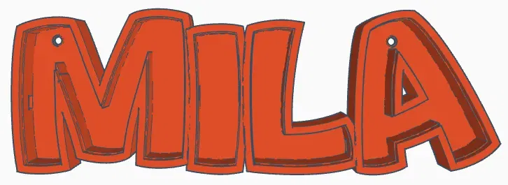 Mila như một đèn tên LED có thể in. In từng chữ cái riêng lẻ, để dán cùng với cáp tổng thể