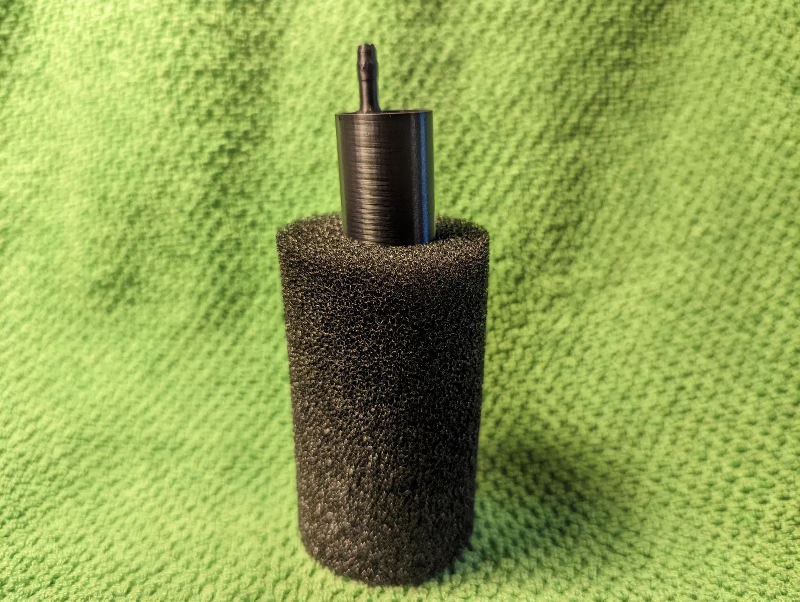 Bọt biển: hình trụ khoảng 8.5x5cm/3.4x2 inch, đường kính lỗ bên trong là 2.1cm/0.8 inch, xin lưu ý đây là bọt biển lọc trước, nên chỉ có một lỗ duy nhất. Tôi đã tải lên một phiên bản thứ hai không có lỗ dưới đáy có thể được sử dụng với bọt biển có lỗ xuyên suốt. Hoặc bạn có thể quấn các vật liệu lọc khác quanh hình trụ và sử dụng dây buộc hoặc dây cao su để cố định.