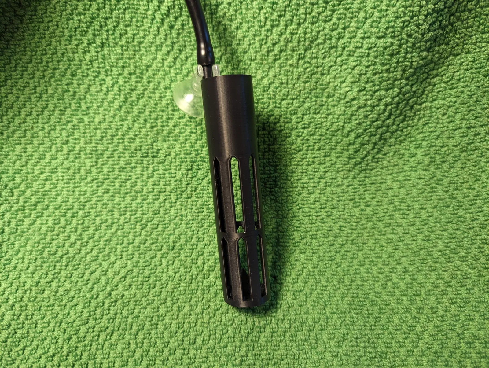 Đây được thiết kế để in với độ cao lớp 0.2 mm mà không cần hỗ trợ. Tôi đã sử dụng ASA, nhưng tôi chắc rằng PLA hoặc PETG cũng sẽ ổn. Nó không nặng nên sẽ nổi nếu không được cố định vào bể bằng một cốc hút. Cốc hút được làm để kẹp vào khu vực gắn ống dẫn khí hoặc vào chính ống dẫn khí.
