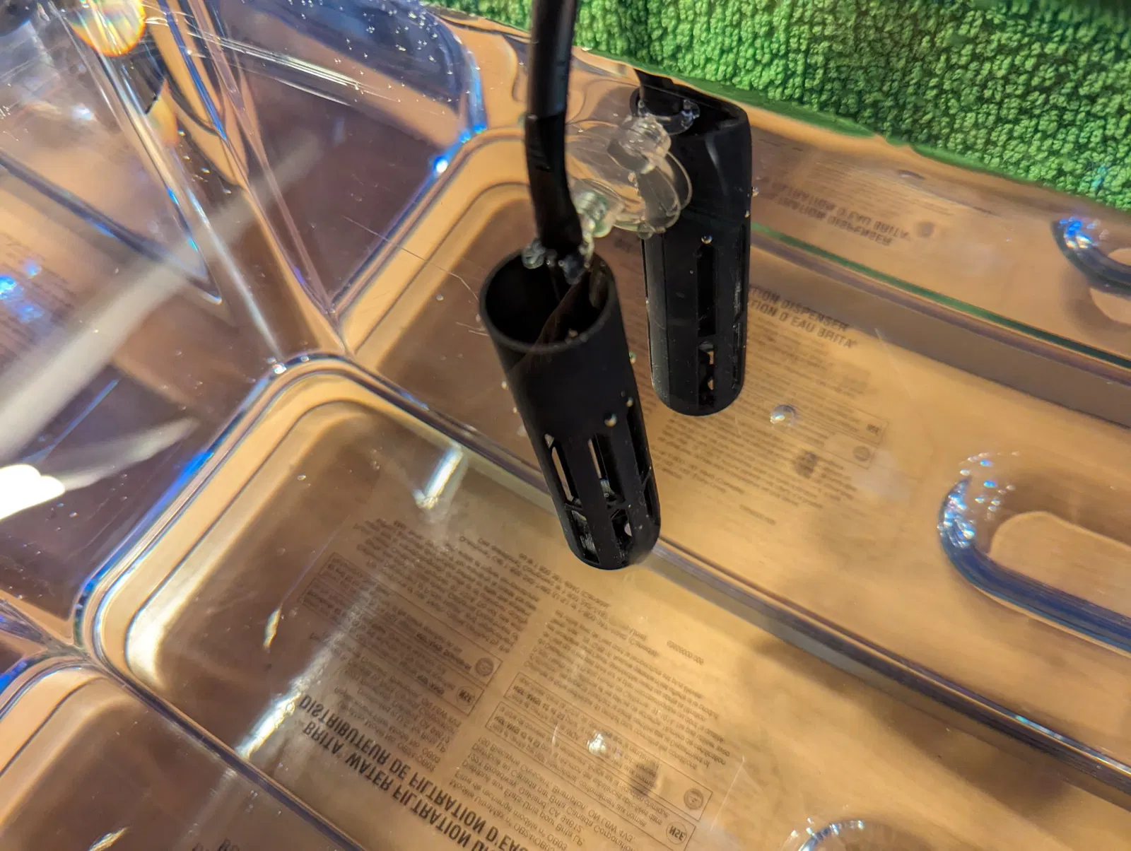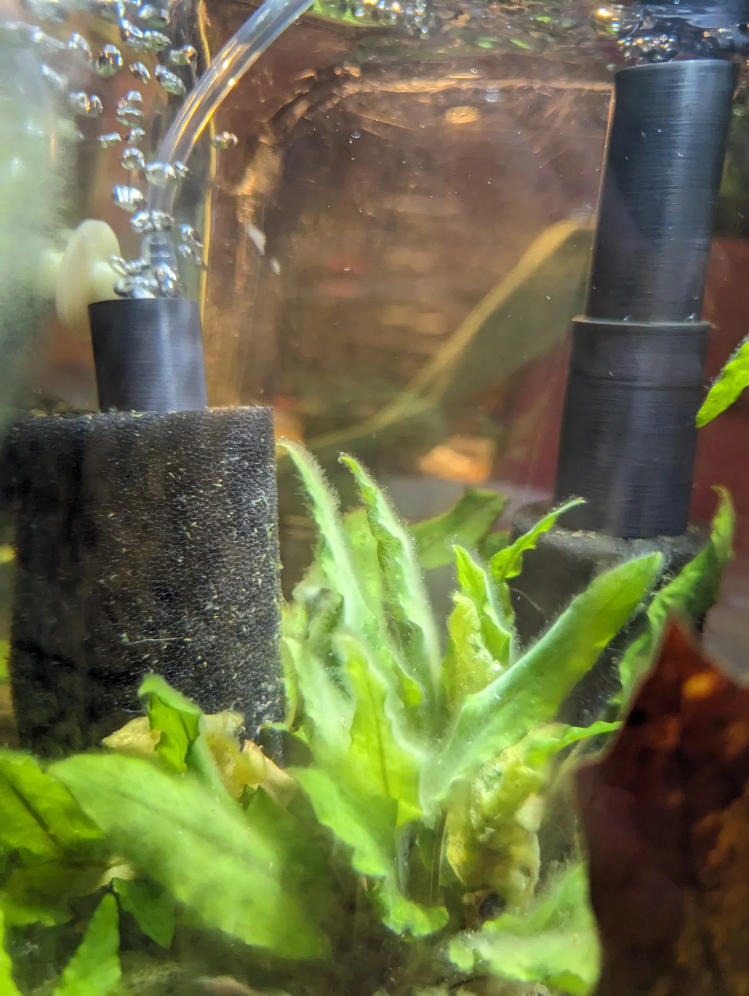 Một bộ lọc bọt biển cho một bể nhỏ. Bộ lọc có một máy bay tích hợp.