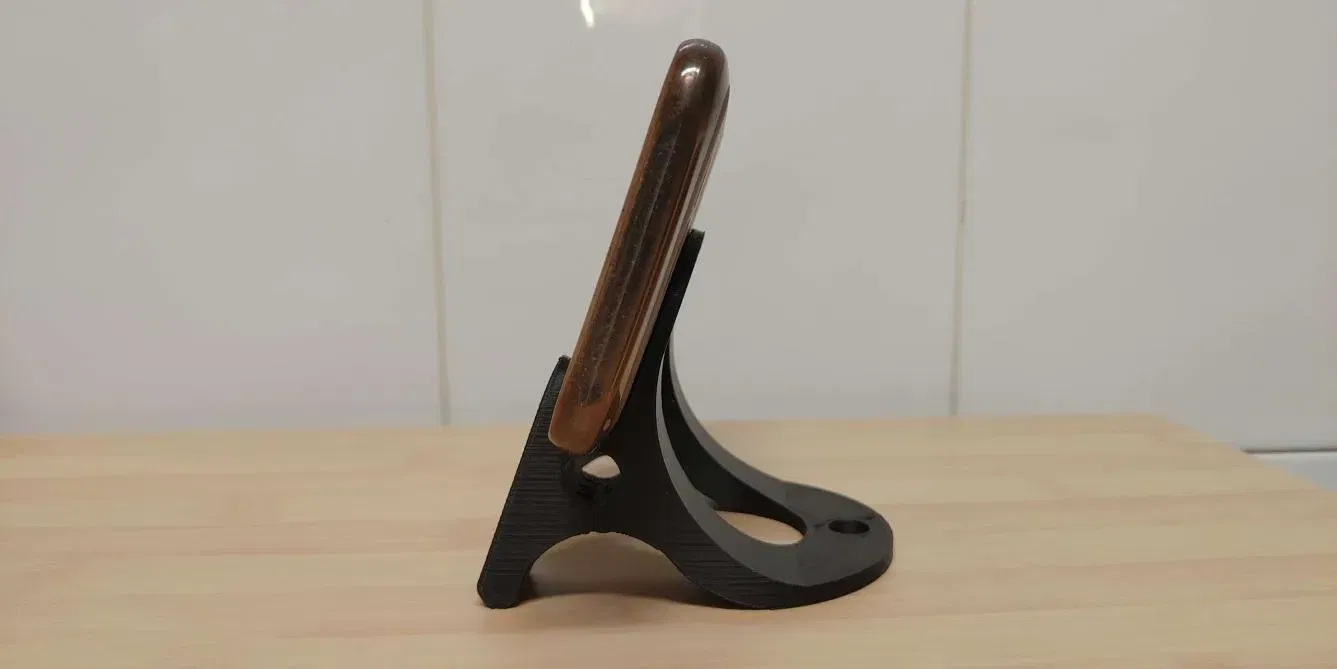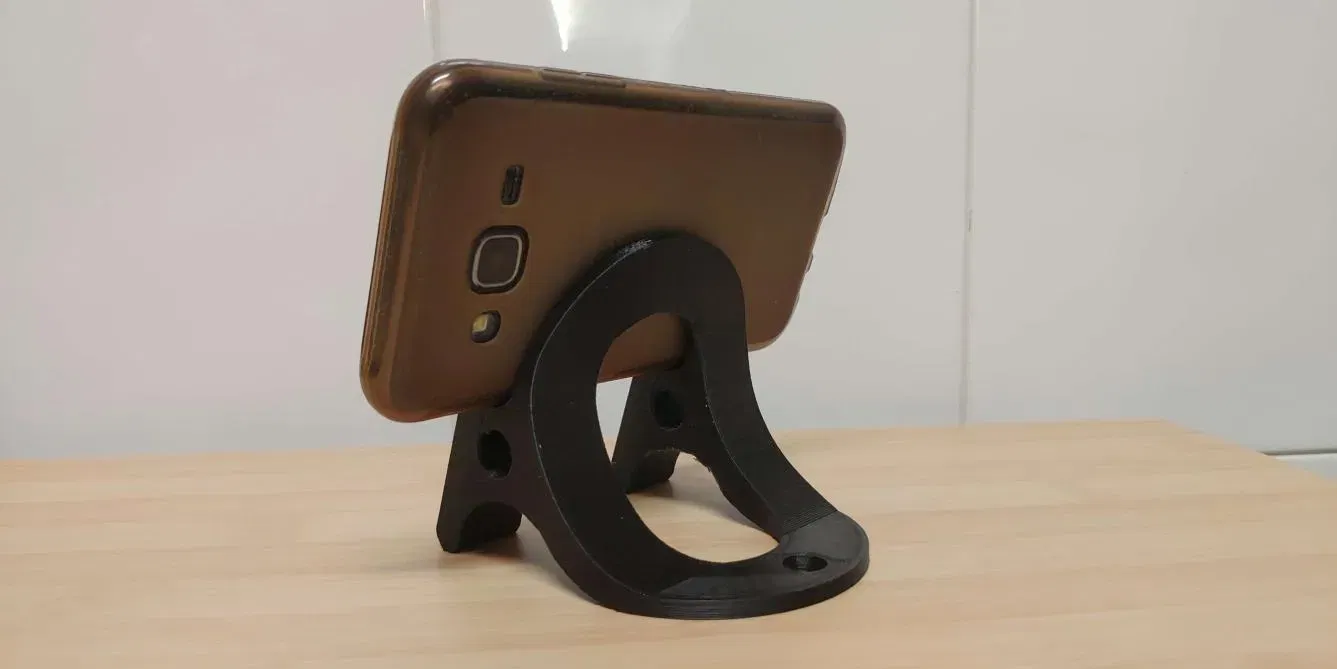 Một giá đỡ tròn và cong. Được làm cho điện thoại thông minh mỏng (mỏng hơn 1,2cm). Tệp OpenScad rất dễ điều chỉnh.