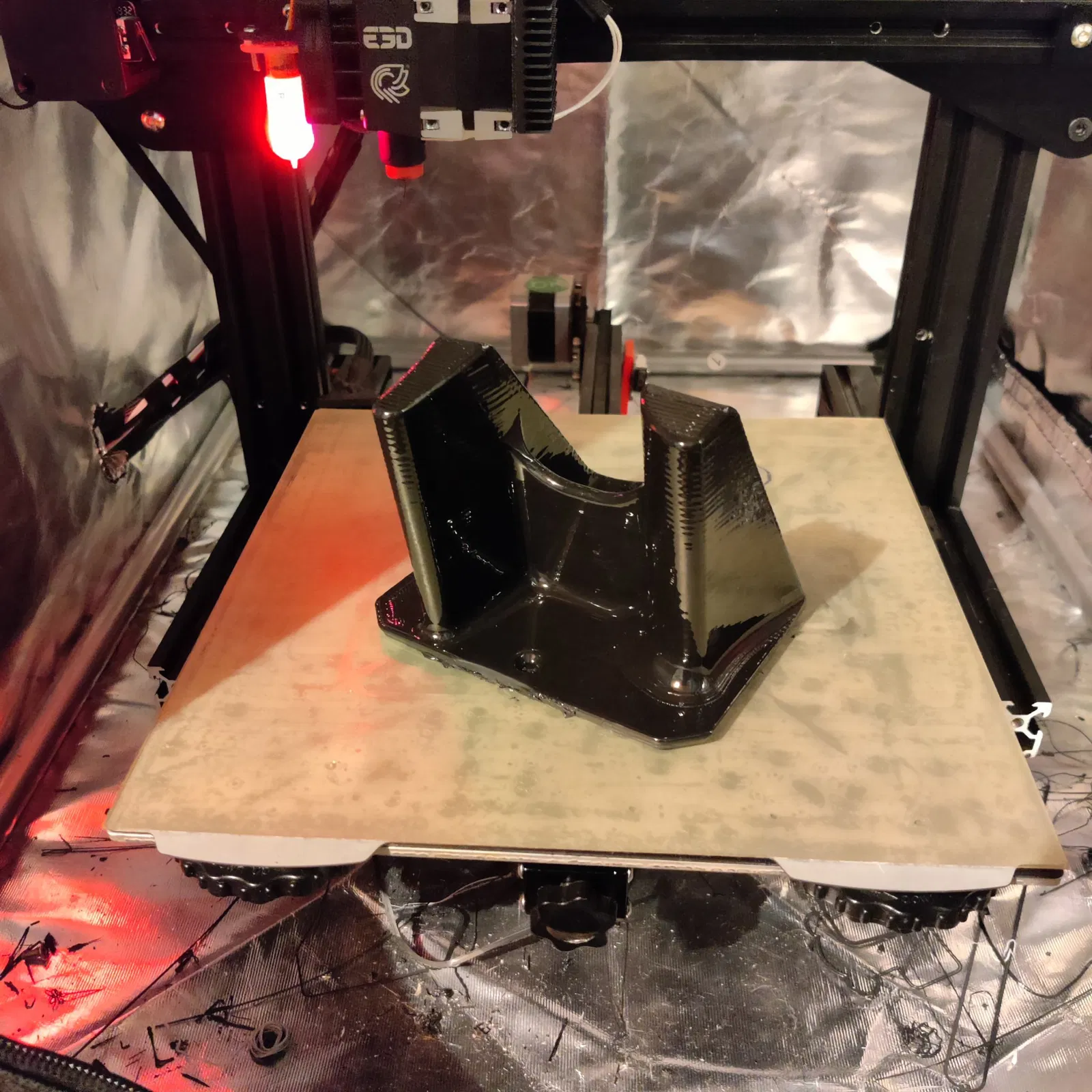 Mô hình ASA là cái sáng bóng trong các bức ảnh, tôi đã làm mịn nó bằng cách để nó trong một bồn với hơi acetone, được làm nóng bởi bàn in của máy in của tôi. Đã làm mịn khoảng nửa giờ.