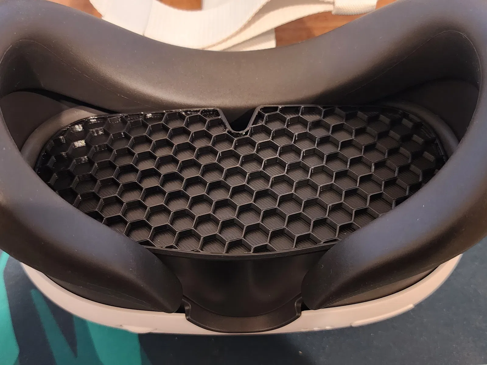 Về mặt kỹ thuật, bạn không cần phải có đường nét bổ sung vào thiết bị (tôi chỉ sử dụng chúng để nâng lên khỏi các ống kính một chút), vì vậy tôi đã thêm một phiên bản phẳng mà sẽ làm tốt công việc này. Tôi đã thử nghiệm điều này (nó lớn hơn một chút để vừa vặn hơn với Quest 3) và nó không nên chạm vào các ống kính cho đến khi bạn ấn/uốn cong nó.