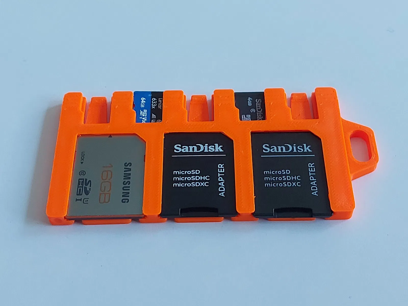Người giữ thẻ Micro SD. Phiên bản cuối cùng dựa vào một khớp ma sát, điều này đã dẫn đến các vấn đề trên các máy in khác. Lần này, tôi đã hoàn toàn thiết kế lại mô hình từ đầu để sử dụng lò xo thay thế. Điều này có nghĩa là các thông số kỹ thuật sẽ không còn là vấn đề trên bất kỳ máy in nào vì nó dựa vào tính linh hoạt của filament. Điều này cũng giải quyết vấn đề của một số nhà sản xuất thẻ SD làm thẻ SD của họ dày hơn một chút so với những nhà sản xuất khác.