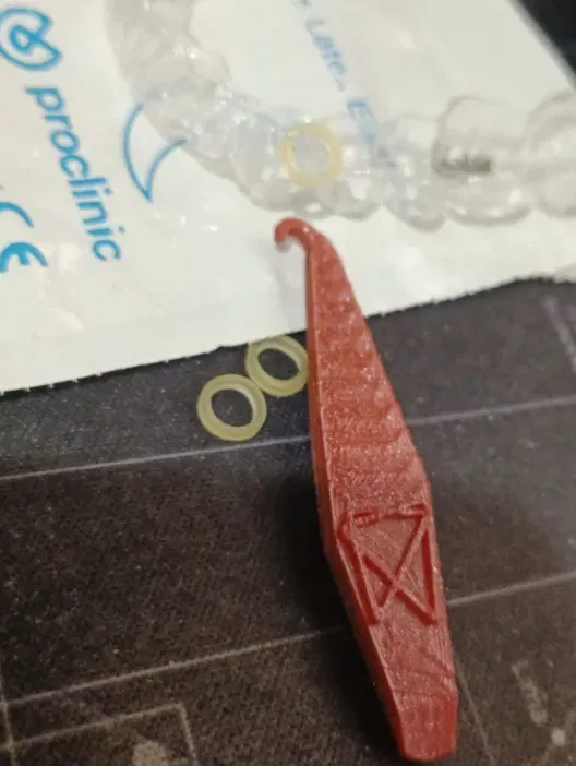 Las gomas của niềng răng Invisalign giúp điều chỉnh các vấn đề về sự căn chỉnh của hàm, nhưng việc đặt chúng và kéo chúng để móc vào các đính kèm thì khá khó khăn. Một giải pháp có thể là những tay cầm này, giúp với một chút thực hành để kéo dây cao su và đặt nó vào vị trí của nó.
