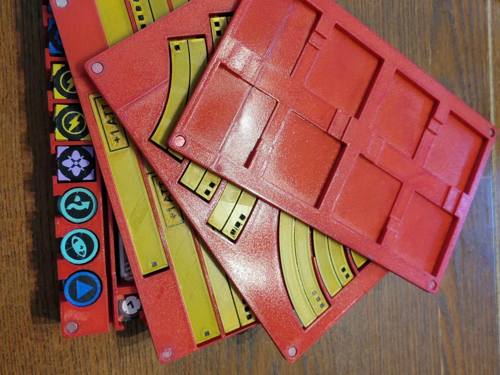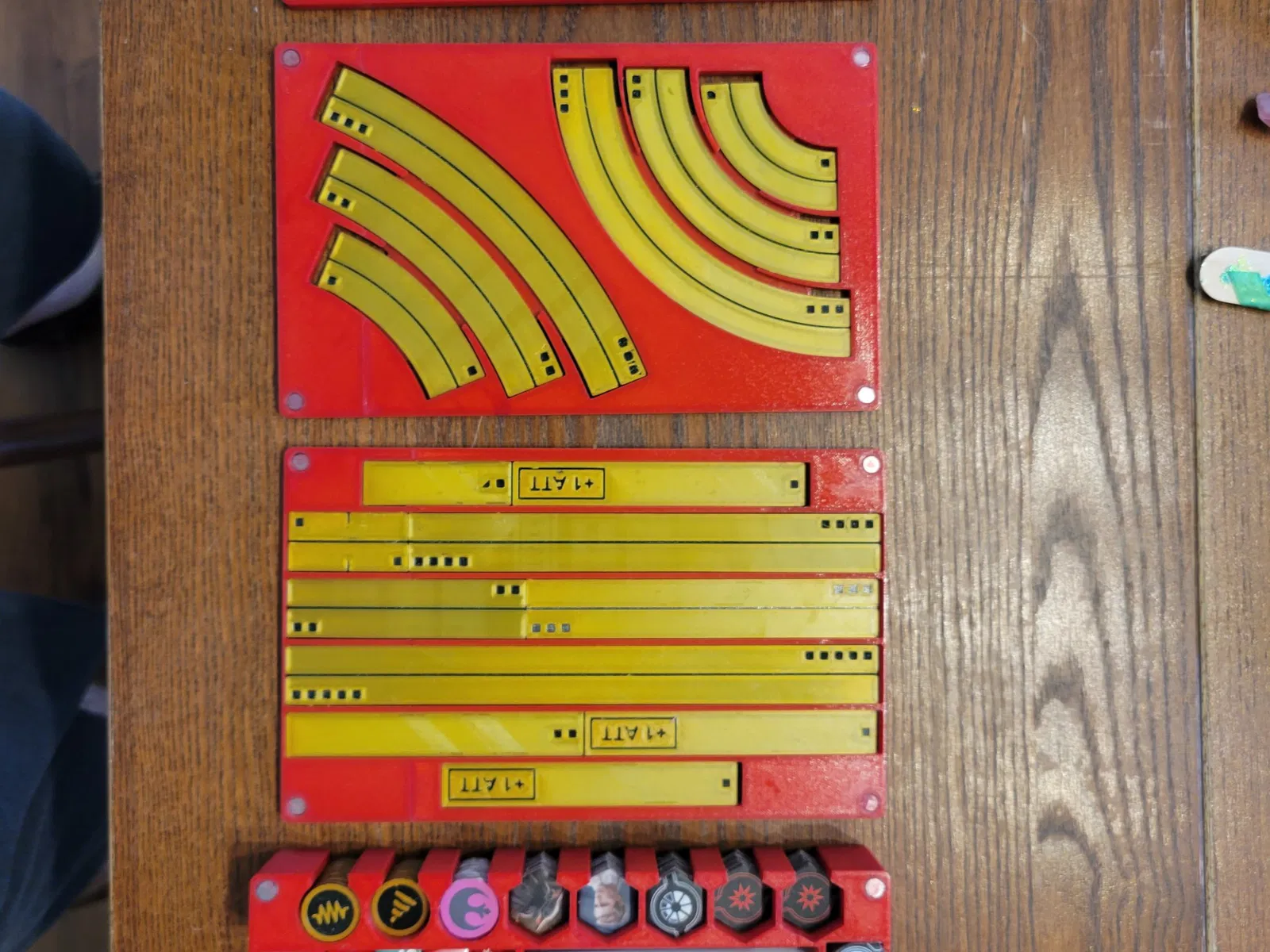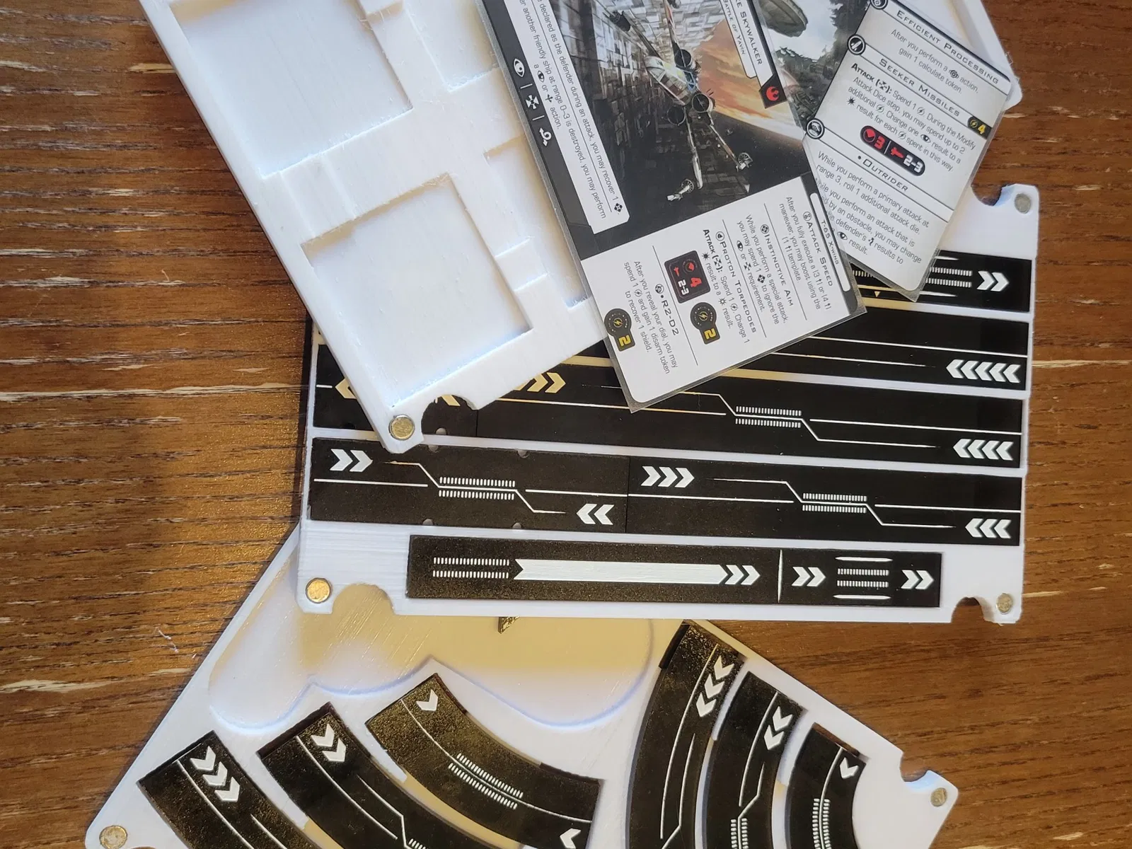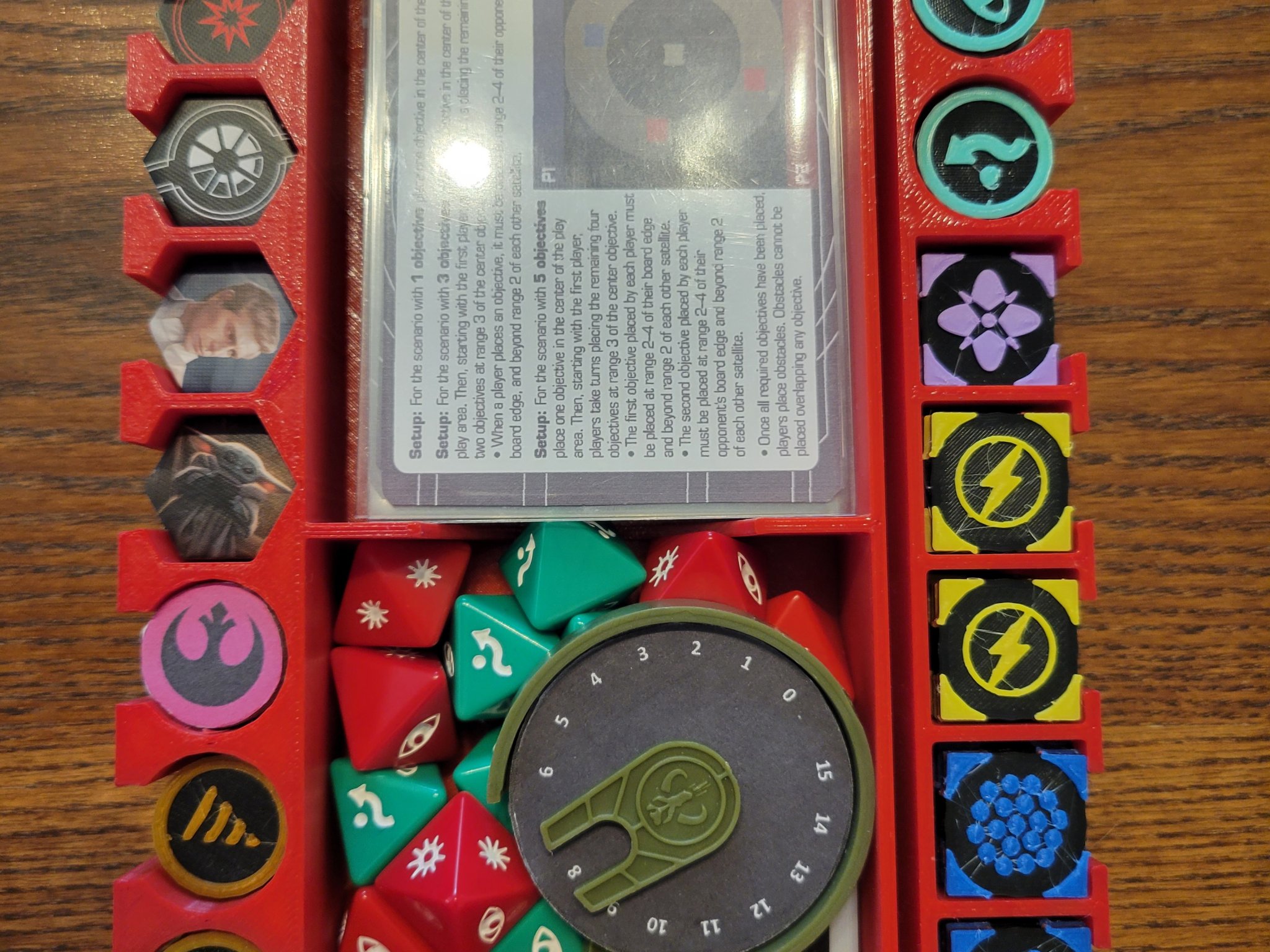 Khay Cơ Bản: Được thiết kế để lưu trữ một bộ bài tiêu chuẩn 2.0 thẻ sát thương, thẻ phi công và nâng cấp, chướng ngại vật, tám viên xúc xắc, token mục tiêu và một vòng quay. Điều này cũng có một khe để bạn có thể mang theo mẫu khoảng cách ba của mình.