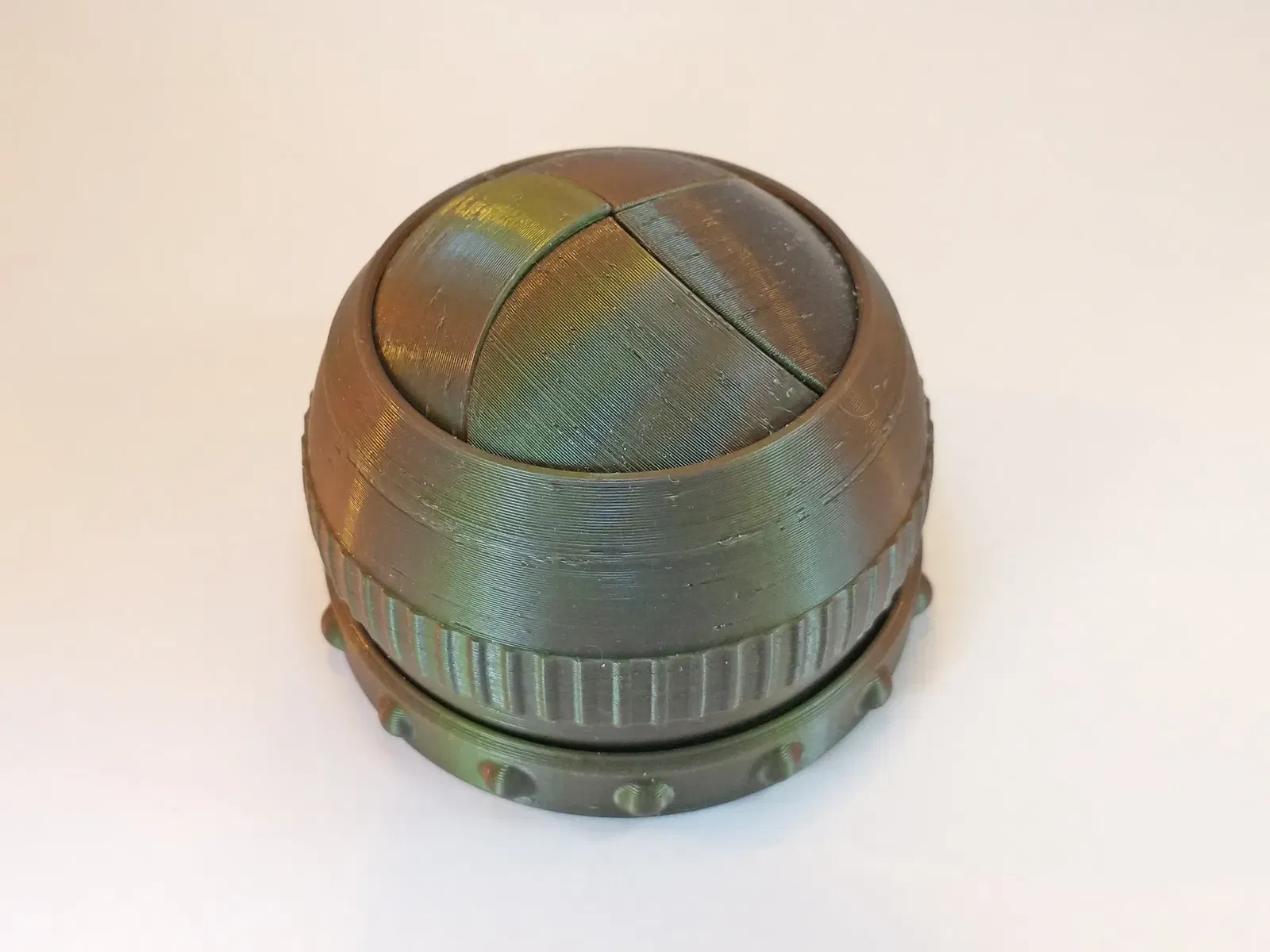 Đây là phiên bản cập nhật của thiết kế lại hộp iris in ngay tại chỗ hoàn toàn ấn tượng của emmet (thật không may, liên kết trên Thingiverse đến thiết kế gốc của anh ấy dường như đã chết). Thiết kế gốc của tôi thiếu cơ chế khóa để giữ cho nó không mở ra nếu bạn ấn vào các lá. Phiên bản này sẽ giữ kín cho đến khi bạn xoay vòng ngoài để mở lại.