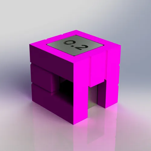 Một khối hiệu chuẩn được lấy cảm hứng từ logo của tôi với các tính năng như phần nhô ra, góc 45/90, cầu, khoảng cách, vật liệu hỗ trợ, văn bản, v.v.