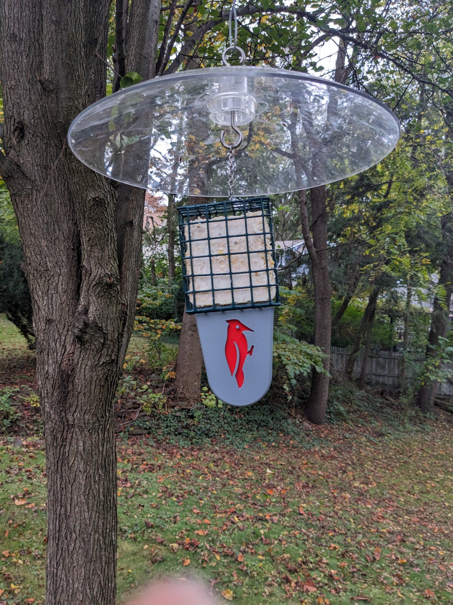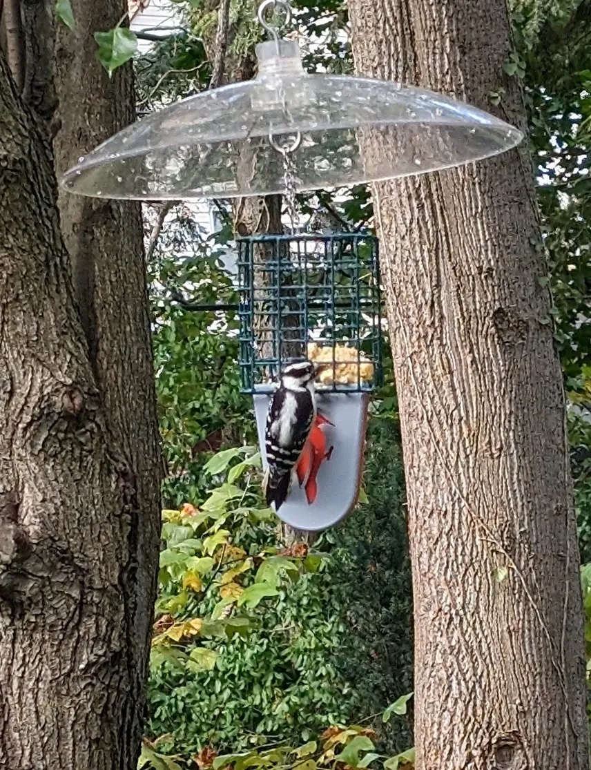 Bổ sung này cho một bộ cho ăn suet kiểu lồng cung cấp cho chim gõ kiến và các loài chim khác một cái gì đó để tựa đuôi vào.