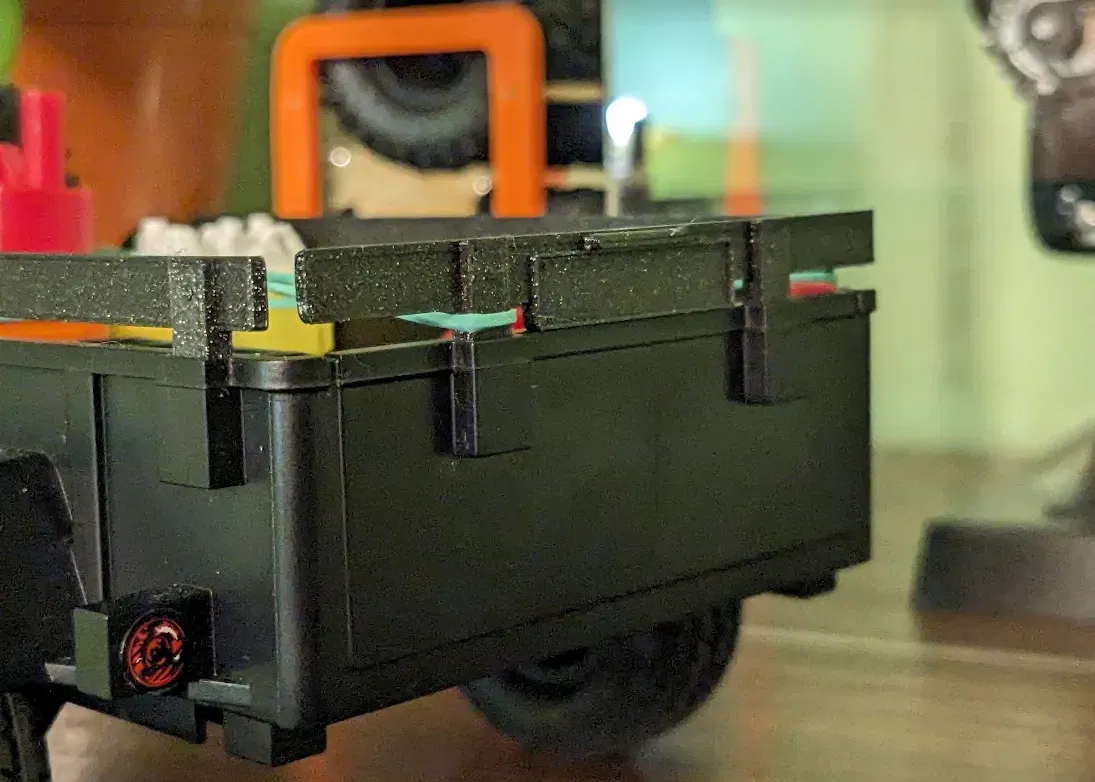 Đây là tấm cọc sau có chiều cao thấp cho rơ moóc Traxxas trx-4m. Nó cũng có chỗ cho biển số. Kích thước phù hợp với giá đỡ bánh dự phòng mà tôi cũng đã thiết kế.