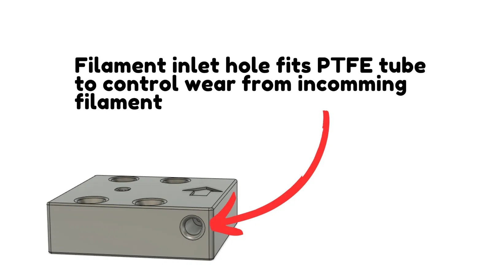 Vỏ nâng cấp này khắc phục cả hai vấn đề đó bằng cách 1) thêm một túi để lắp một đoạn ống PTFE ở lối vào của vỏ cảm biến hết filament, và 2) thêm một cạnh vát bên trong lối vào đó mà thường kẹt filament trong quá trình nạp.