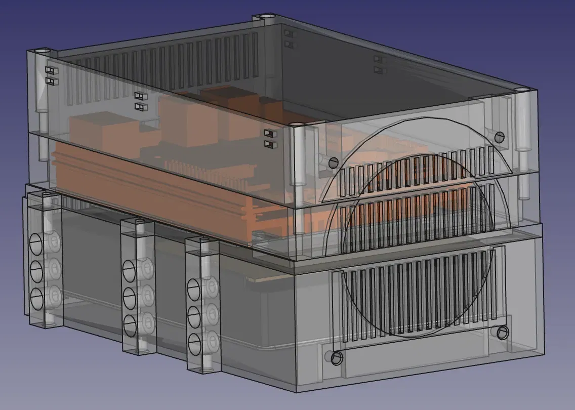 Ảnh của ngăn HDD là từ một phiên bản hơi khác. Tệp STEP đã được bao gồm. Xem bản vẽ kỹ thuật để biết vị trí lỗ gắn ở mặt dưới.