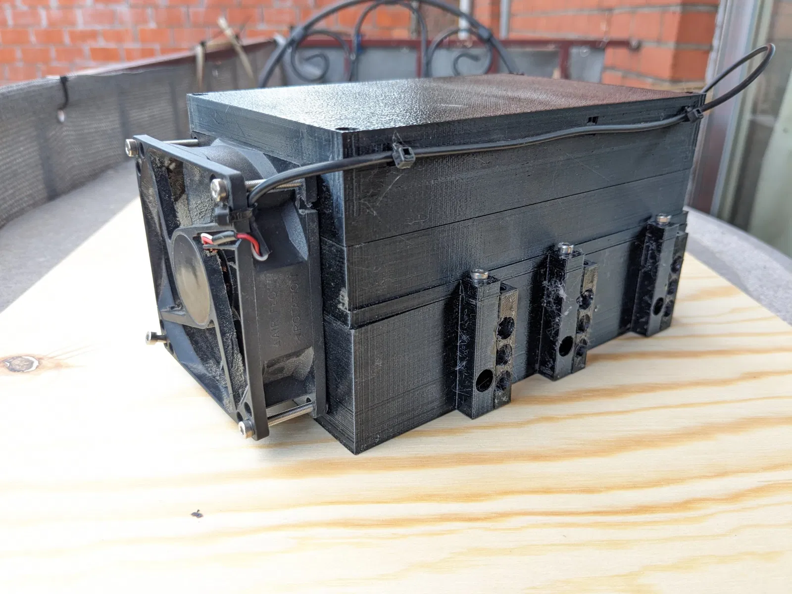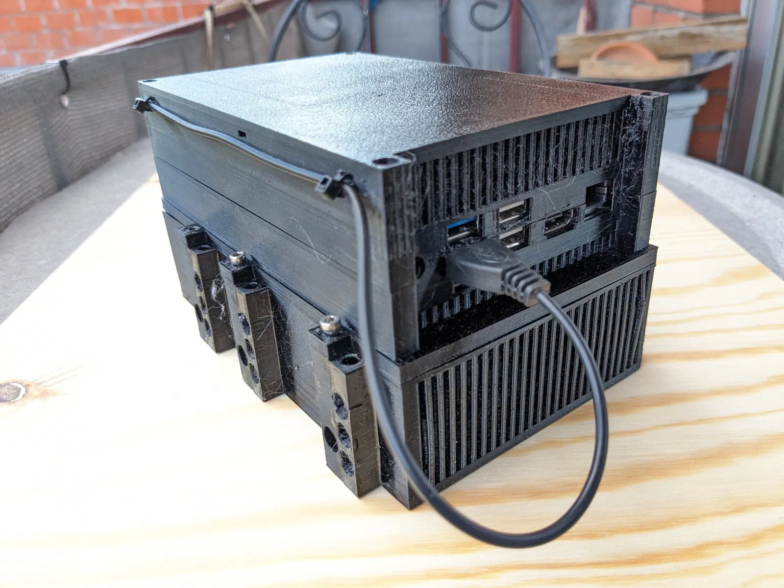 Bạn sẽ phải tự làm cáp nguồn cho HDD. Cắt một cáp có đầu nối nguồn SATA góc, bấm một đầu nối JST XH vào cáp. Nên gắn HDD ngược lại. Bạn phải nối 12V từ PSU đến đầu nối nguồn của HDD. CẨN THẬN, kết nối nguồn điện có điện áp cao hơn sẽ làm hỏng HDD. Xem https://forum.odroid.com/viewtopic.php?p=359208#p359208 Dễ nhất là nếu bạn sử dụng quạt USB 80mm. Bạn có thể dùng dây zip để buộc cáp vào vỏ.