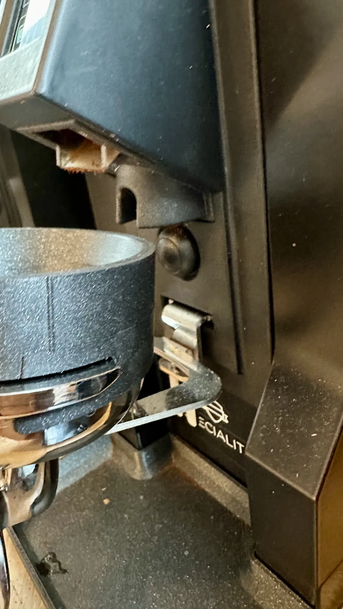 Tôi đã tạo ra thiết kế này để hoạt động với máy xay Eureka Mignon Specialita. Đối với máy này, cần phải nhấn nút nhỏ để bắt đầu quá trình xay.