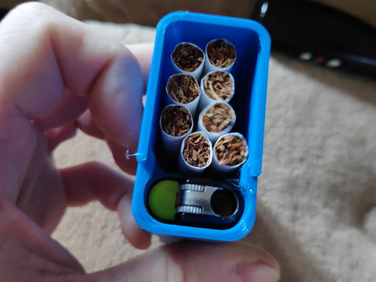 Tôi đã thêm một hình trụ ở dưới cùng của ngăn chứa bật lửa để nâng nó lên vì nếu không thì bật lửa sẽ khó với tới. Một bật lửa cricket vừa vặn nhưng bật lửa Bic thì không.