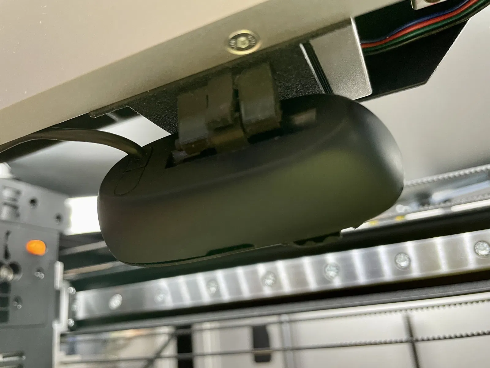 Nó được thiết kế để gắn camera C270 ở phía trước của khung vỏ. Hiện tại, cáp camera đang được thử nghiệm bằng cách tạm thời kéo nó ra qua khe hở ở cửa trước. Tôi dự định cuối cùng sẽ định tuyến nó dọc theo khung bên trong và kết nối ra qua giá đỡ cuộn filament phía sau. Các phụ kiện cho việc định tuyến cáp vẫn đang trong quá trình thiết kế. Nó đã được cắt bằng prusa slicer và in bằng eSUN Solid Black PETG. Đối với bản in cuối cùng, đã sử dụng chiều cao lớp 0.1mm, độ đặc 50%, hỗ trợ chỉ trên bề mặt in, và tốc độ in 120mm/s ở 240 độ C. (Ngay cả khi tôi in với chiều cao lớp 0.2mm trong thiết kế ban đầu, không có vấn đề gì khi sử dụng nó.) Việc lắp đặt chỉ đơn giản yêu cầu chèn qua các khe hở của khung. Nó được cố định bởi độ đàn hồi của chính nó. Nếu bạn muốn cố định nó chắc chắn, bạn có thể sử dụng băng keo hai mặt để cố định phía trước. (CẬP NHẬT) Thêm giá đỡ cuộn cho cáp đi qua. (Vì giấy phép khác nhau, hãy thêm nó như một liên kết.) (CẬP NHẬT) Đã thêm một hướng dẫn cáp có thể được kẹp trực tiếp vào khung dọc bên trái.