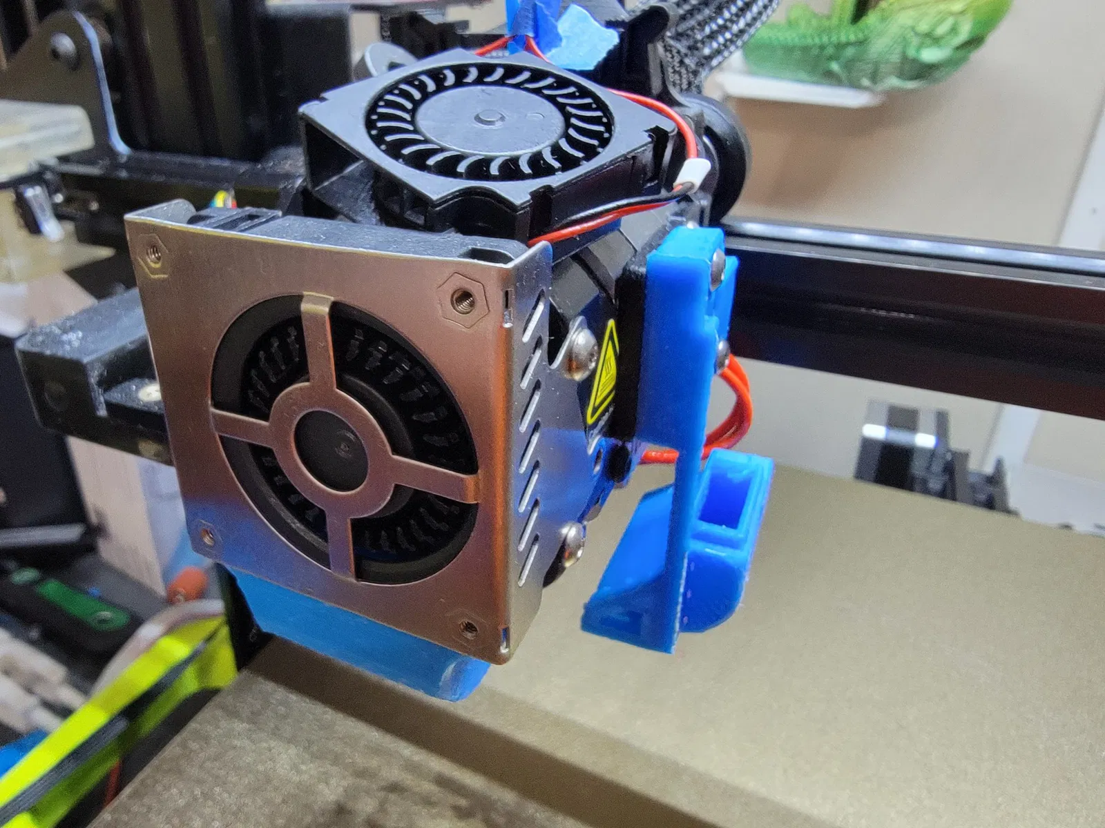Điều này cho phép bạn đặt một quạt 3010 ở bên phải của đầu đùn, thổi không khí lạnh tươi vào vòi phun để hỗ trợ làm mát ở nhiệt độ/tốc độ in cao hơn.