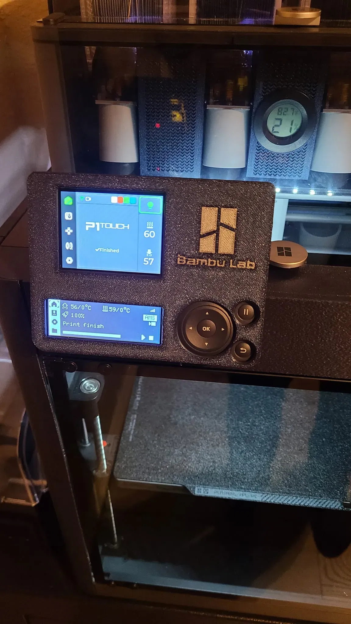Tôi muốn dễ dàng gắn và tháo màn hình P1Touch trong trường hợp tôi cần điều chỉnh nó. Tôi đã sử dụng một mặt phẳng snap on cho màn hình gốc, vì vậy tôi đã kết hợp nó với một số tệp khác và lấp đầy một số khoảng trống. Tôi đã thêm logo dưới dạng các thân riêng biệt để tôi có thể in bằng nhiều màu sắc.