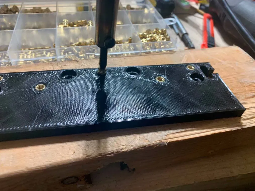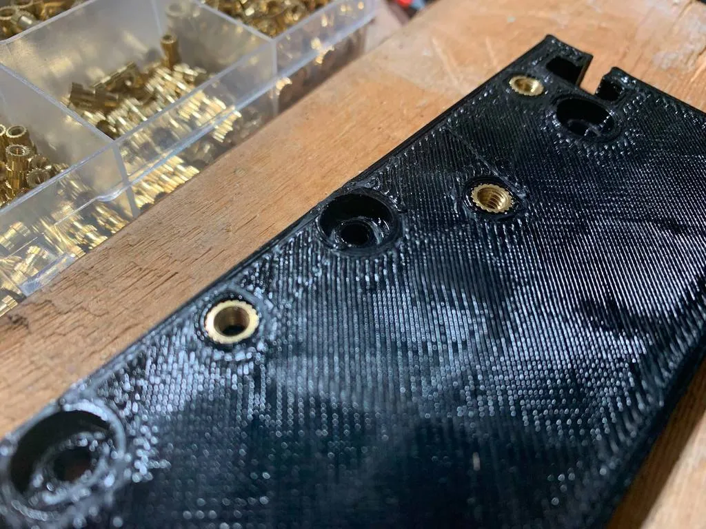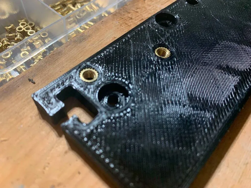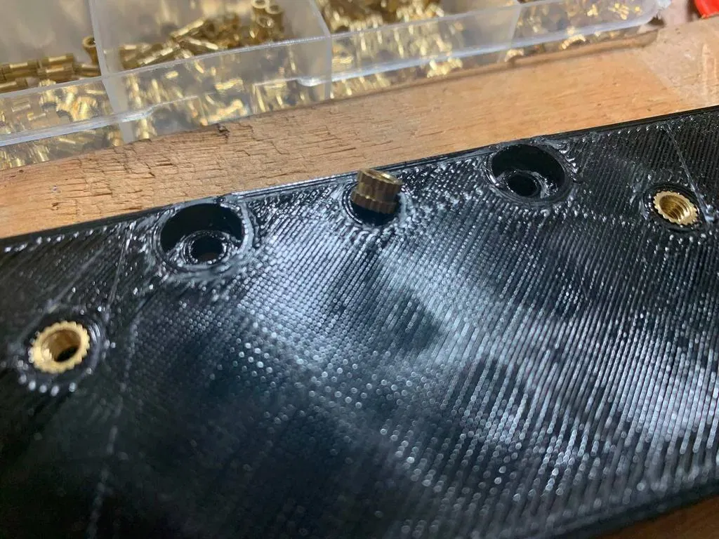 - Cạnh dày 1/8" in mà không cần hỗ trợ bằng cách có một lớp hy sinh mỏng 1 lớp ở dưới đáy của một số lỗ vít. Sau khi in, hãy làm sạch các lỗ vít bằng cách sử dụng một mỏ hàn, một cái khoan hoặc một con dao.