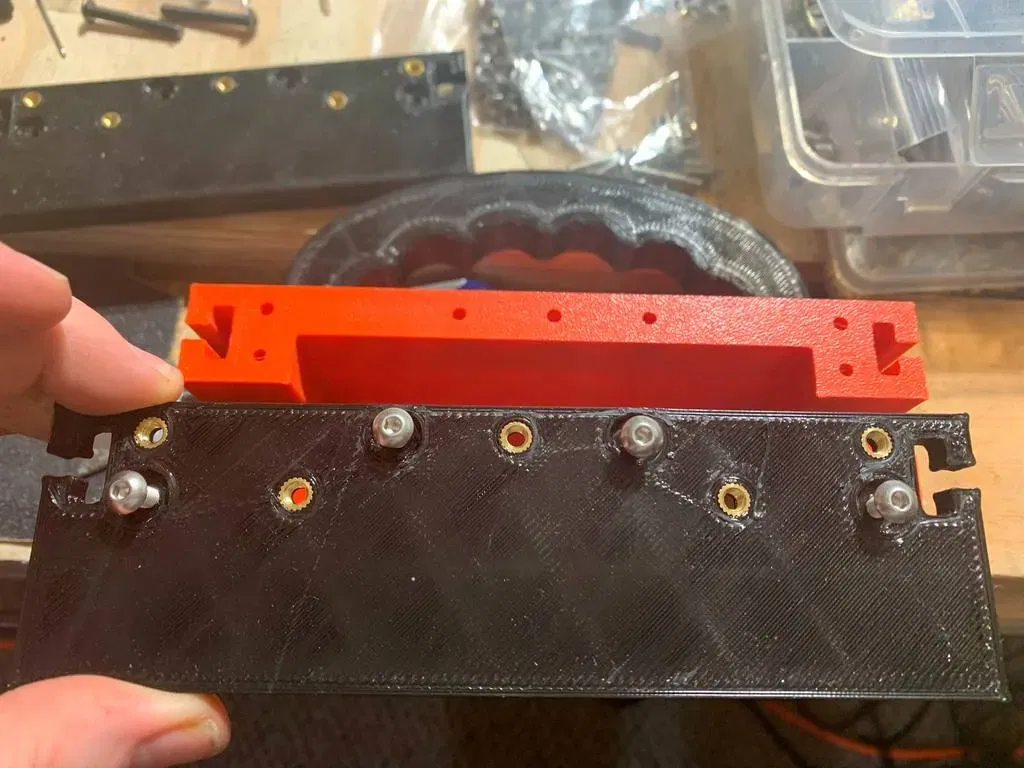 - Tám (8) ốc vít, M4×16 mm, cho các bên — (lưu ý: danh sách gốc đã chỉ định một ốc vít bằng thép không gỉ với một flange, còn gọi là “TBHC BASE PLATE A2”) nhưng tôi đã không mua hoặc sử dụng bất kỳ phần cứng đặc biệt nào như vậy. Tôi chỉ sử dụng một ốc vít M4×16 mm thông thường mà không có flange đặc biệt nào.)