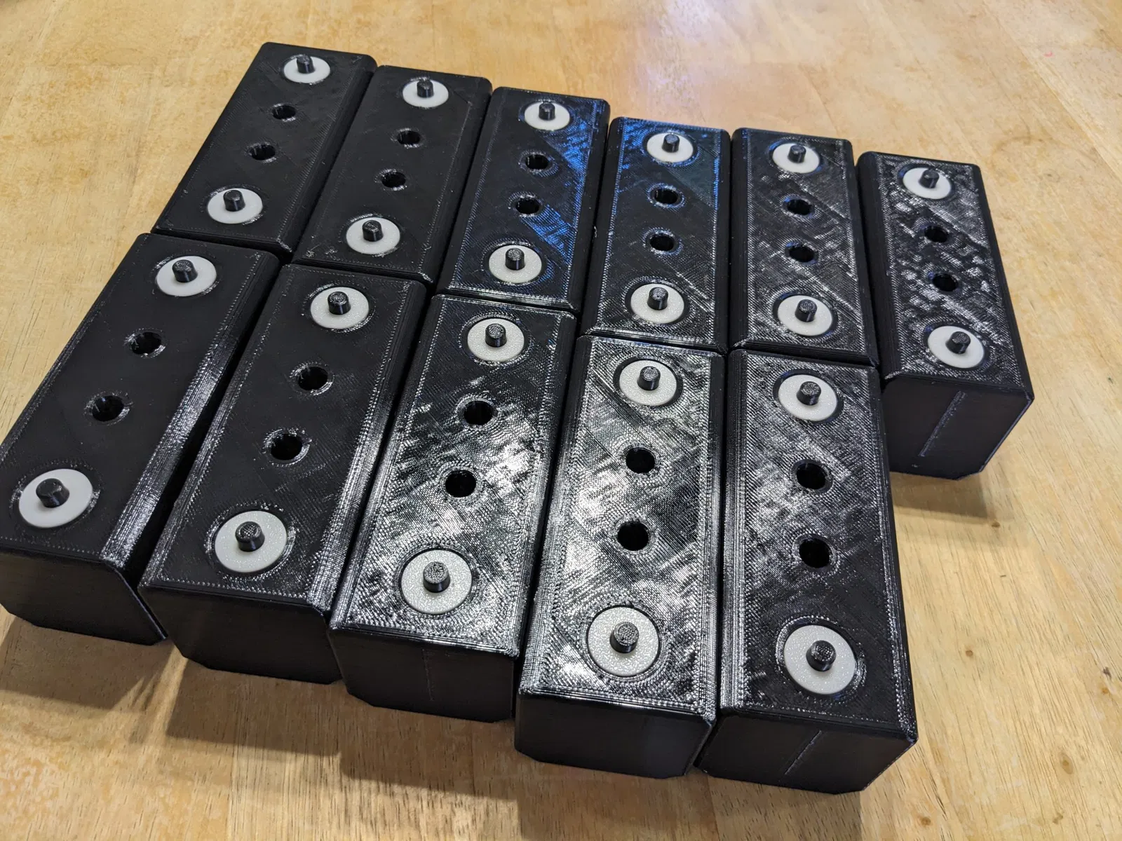 - Các bộ phận góc linh hoạt Double Strip đã được thêm vào cũng như một cartridge mới và hỗ trợ giữa. Cartridge mới cho các bộ phận này phải sử dụng Ruthex M5 Threaded Inserts và vít đầu phẳng M5 dài 16mm. Tất cả các bộ phận khác để kết nối các góc và miếng đệm cho các dải dày khác nhau giống như mọi thứ khác.