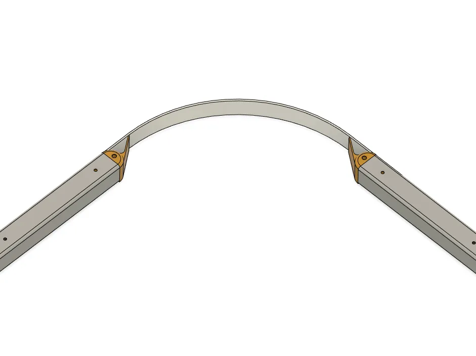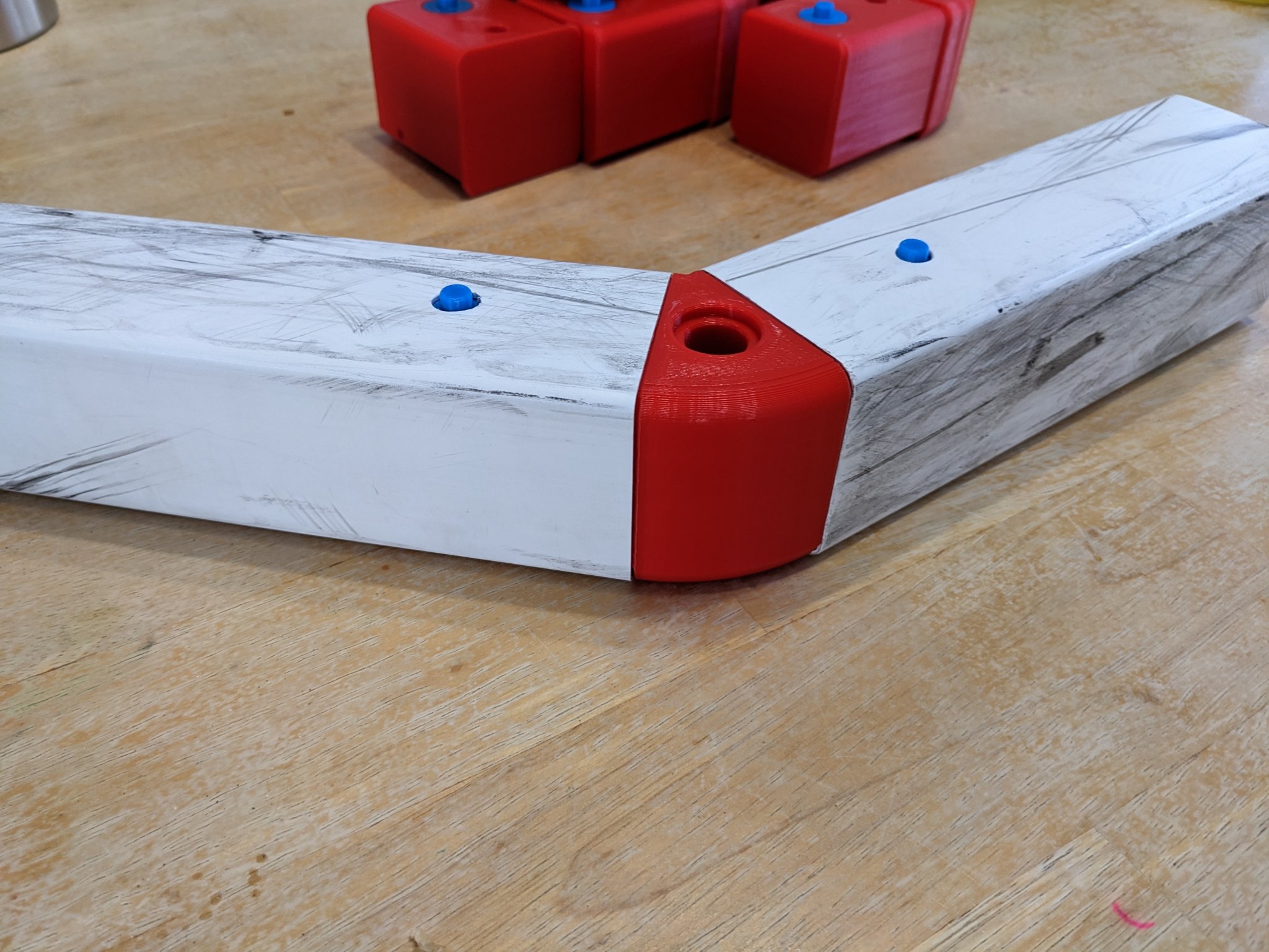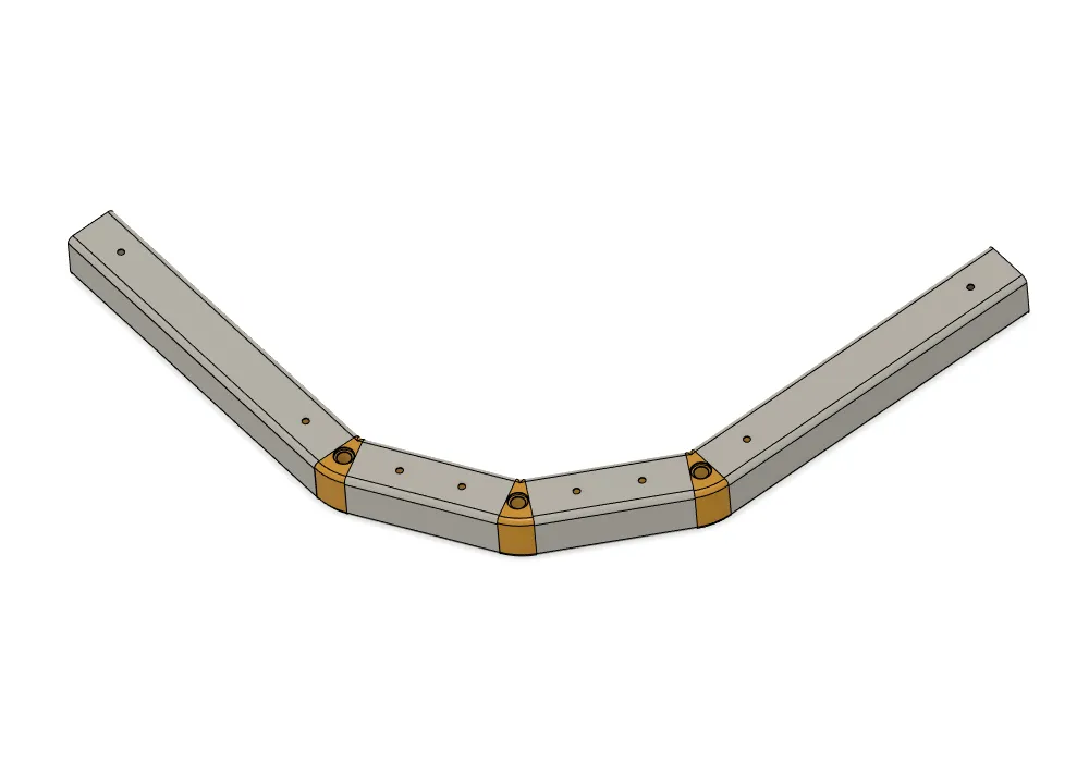 Thân chính của Flex Corner nên được in bằng TPU. Cartridge flex corner M5 có thể được in với vật liệu cứng hơn và 100% độ đầy. Sử dụng vít M5 đầu phẳng và đai ốc dài 40mm hoặc dài hơn để gắn vào các dải nhựa HDPE dày 3/16" cắt cao 2".