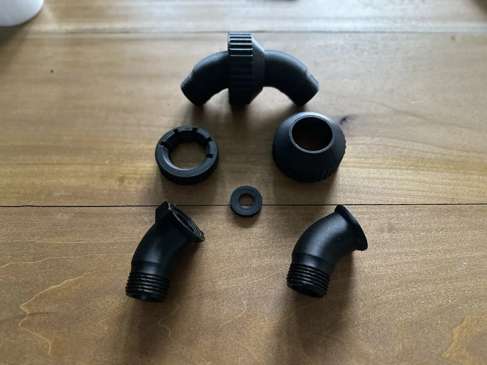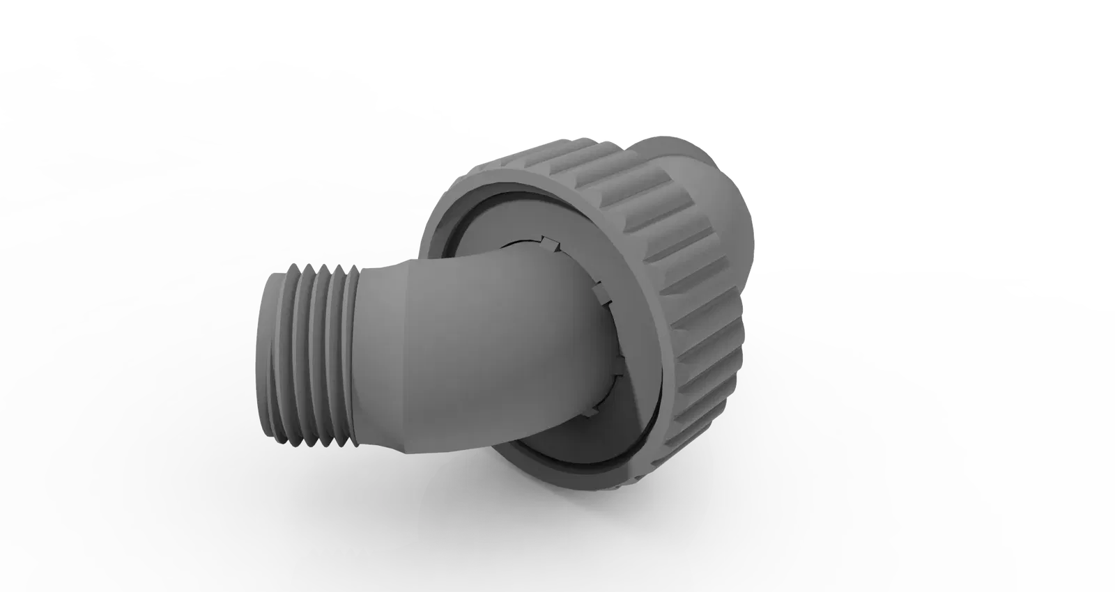 Đây là một bộ nối ống nước vườn có thể điều chỉnh hoàn toàn có thể in 3D. Chỉ cần thêm một miếng đệm ống nước tiêu chuẩn giữa hai mảnh góc có ren và sử dụng đai ốc khóa có ren để siết chặt hai bên lại với nhau để tạo ra một seal chống thấm nước. Thiết kế này được dự định để sử dụng cho nhiều góc không chỉ góc vuông vì phía không có rãnh có thể được xoay theo bất kỳ hướng nào mong muốn.