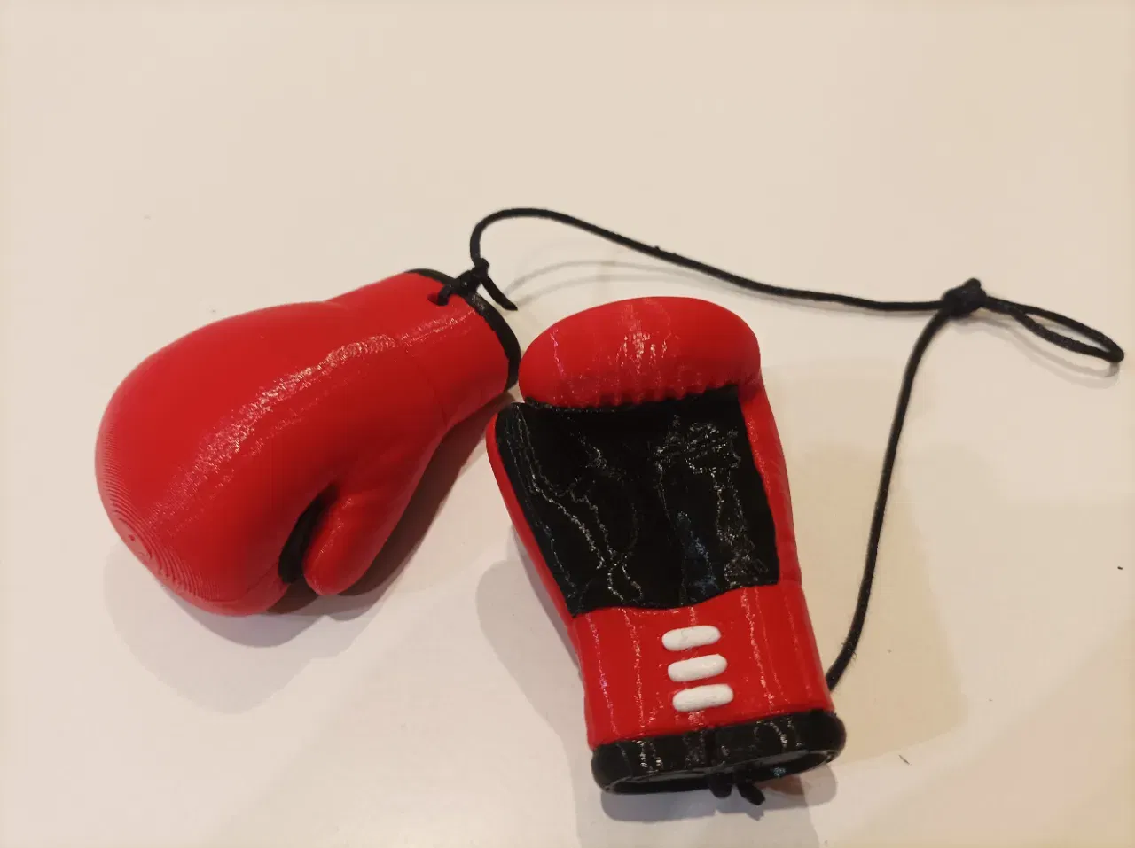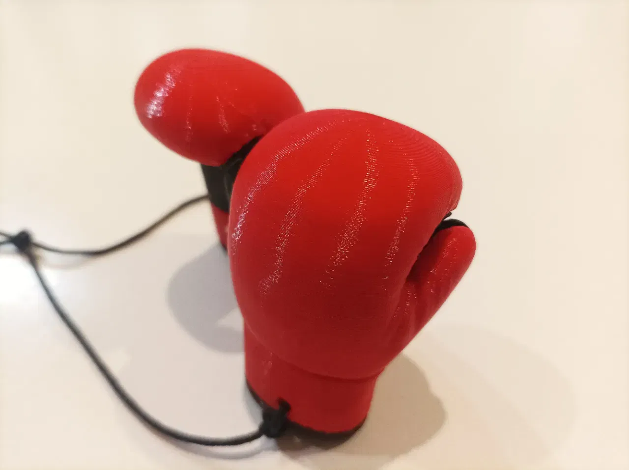 Bạn muốn in một cái gì đó độc đáo để trang trí cho xe của mình? Bạn có thể sử dụng một số sợi dây bện hoặc một chuỗi hạt để treo những đôi găng tay boxing này từ gương chiếu hậu. Những nếp gấp trên găng tay phản chiếu đẹp trong ánh sáng, đặc biệt với một ít PLA sáng bóng.