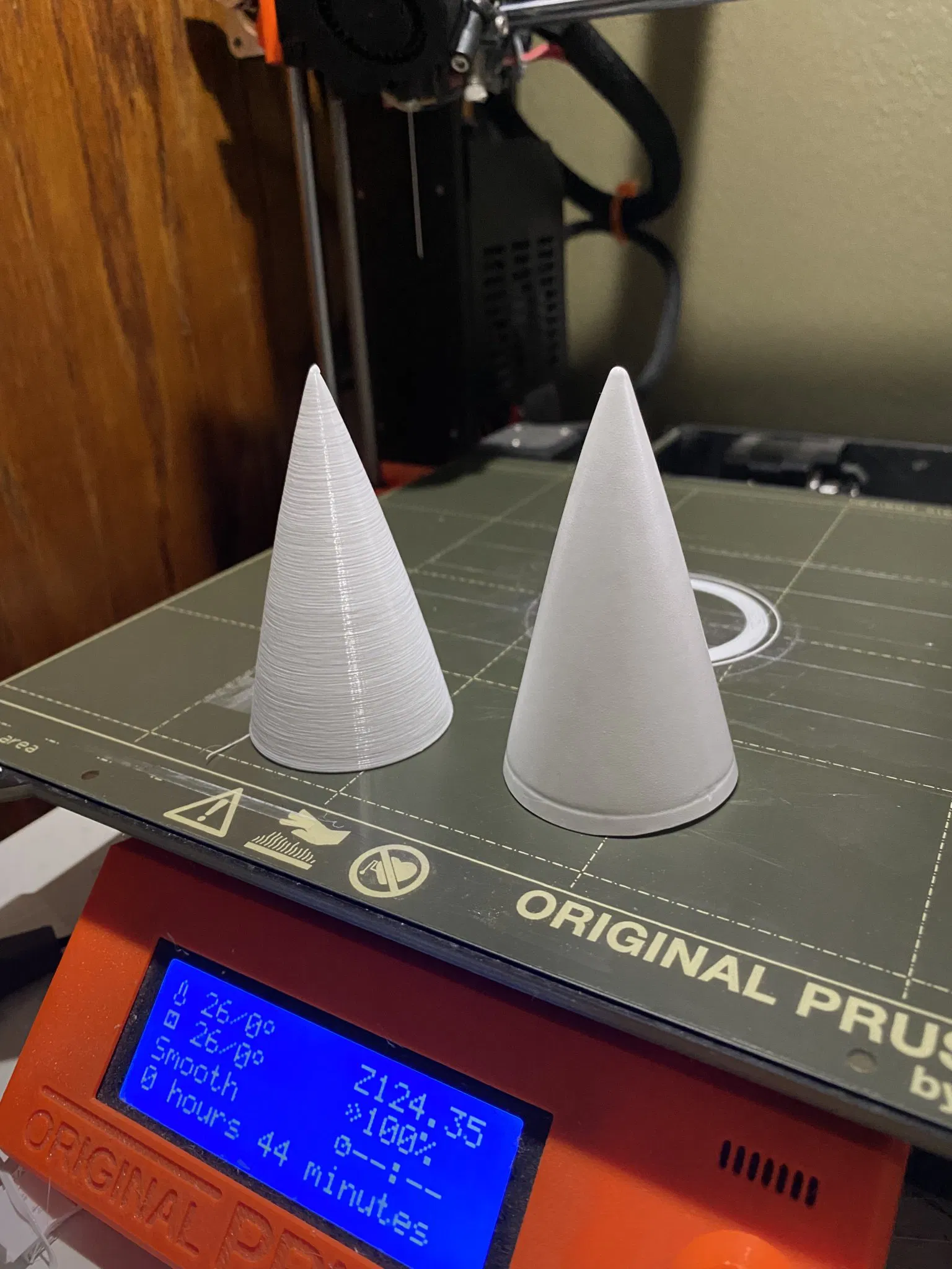In nó ở chế độ Vase, và đảm bảo bạn in mà không có lớp đáy nếu không nó sẽ “đóng nắp” cho bạn, dẫn đến việc bạn phải cắt đáy ra. Tôi đã in cái của mình với 0.2mm với 5mm viền, và nó in và vừa vặn hoàn hảo khi so với bộ phận tôi đã mua từ AliExpress.