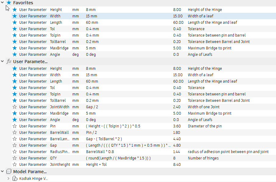Bản lề có thể mở rộng và tham số đơn giản được thiết kế trong Fusion 360. có lẽ sẽ không hoạt động trong các chương trình khác
