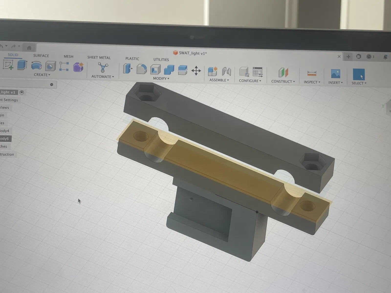 Giá đỡ đèn này gắn vào yên xe bằng (2) bu lông M4x18mm và (2) đai ốc M4. Tôi khuyên bạn nên in với độ đặc 100%, có hỗ trợ ở mọi nơi.