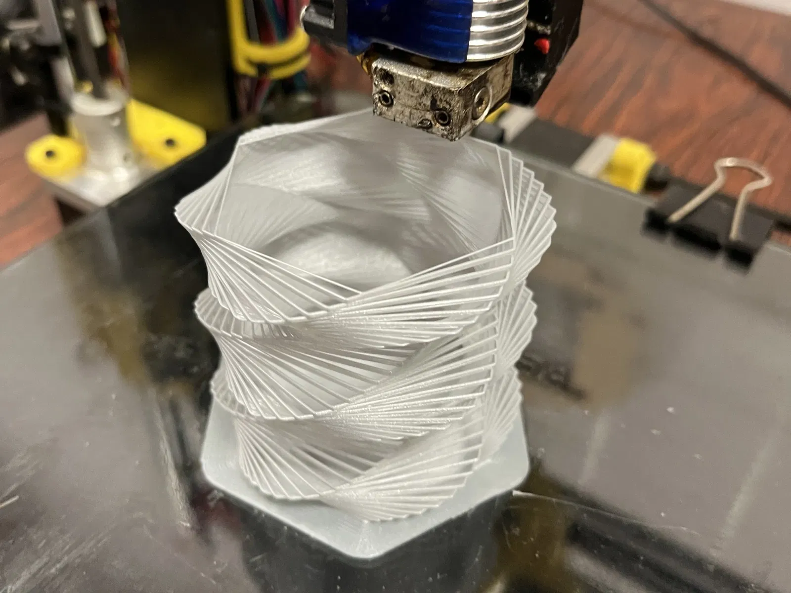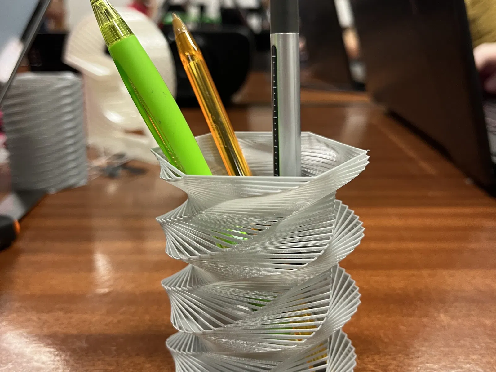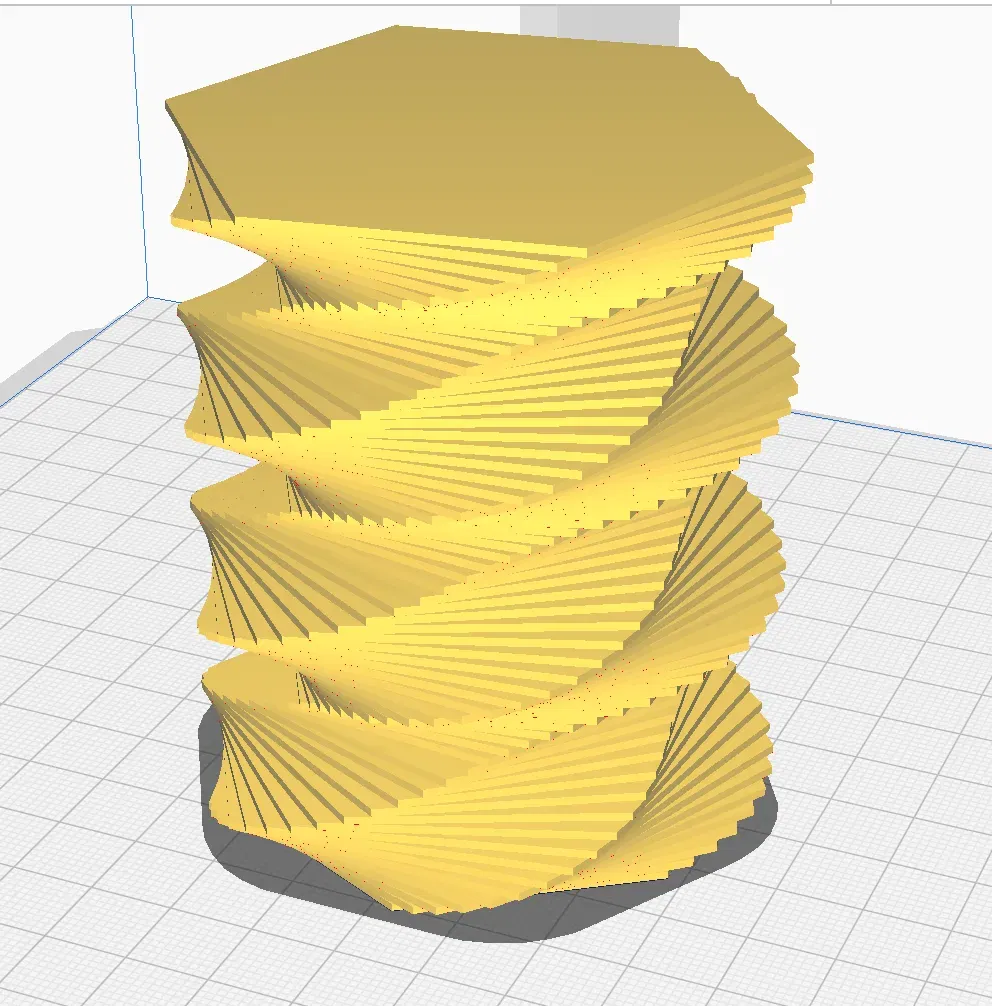 Dự án này được thực hiện để tạo ra một chiếc bình với một số hiệu ứng, để thử nghiệm Nội dung Xoắn ốc Bên ngoài. Có thể thay đổi nó, thay đổi các tham số trong mã scad.