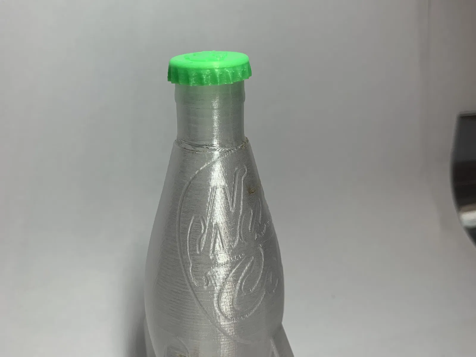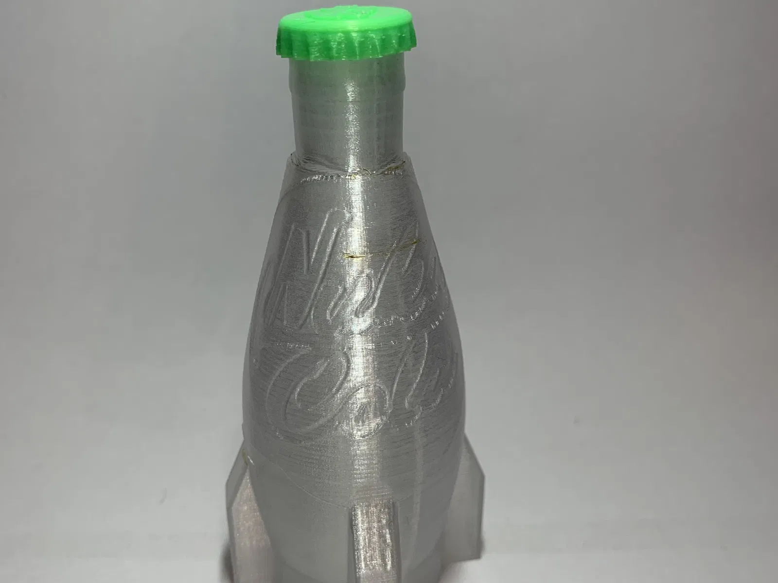 FALLOUT chai nuka cola rỗng + nắp chai Máy in: Artillery Sidewinder X2 chiều cao lớp: 0,16 & 0,2 độ rộng đường in: 0,4 đổ đầy 0% & 30%; thời gian in ~ 2,5 h NoName PETG trong suốt; NoName PLA Xanh Mô hình của tôi: https://www.printables.com/de/@CB_384764/models