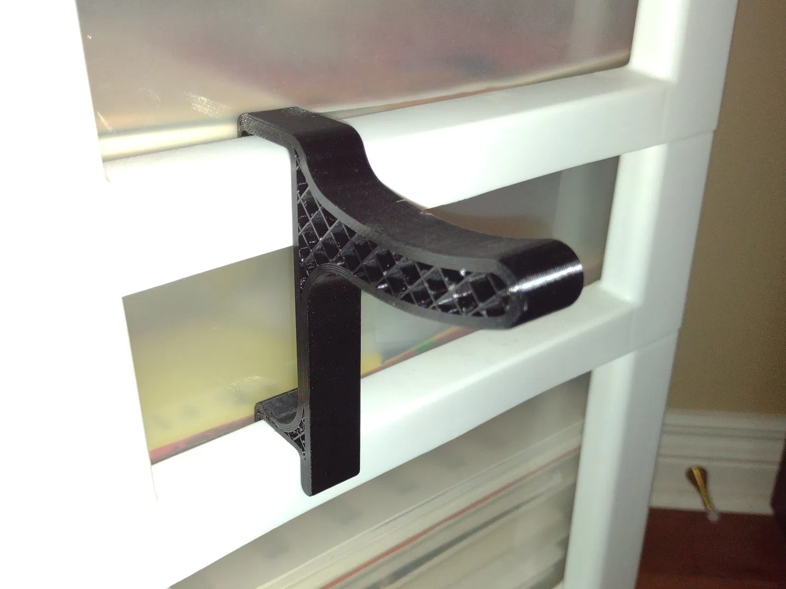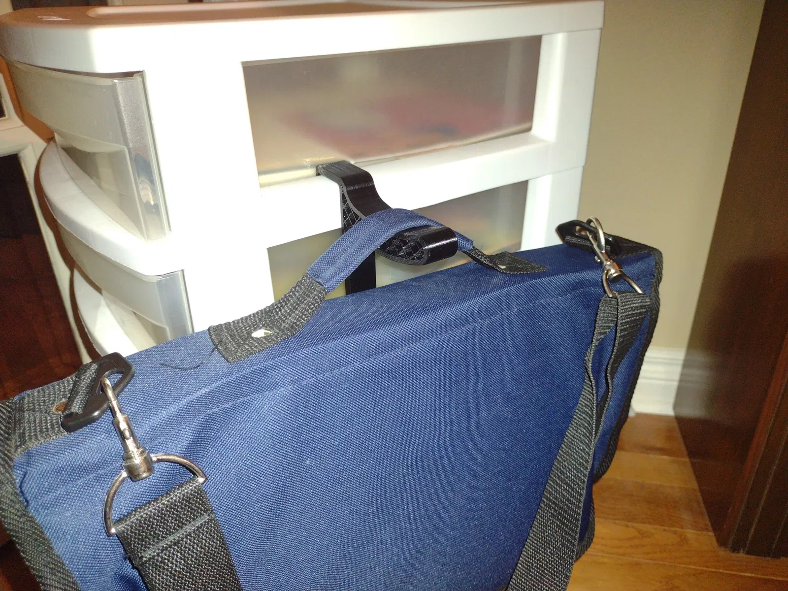Tôi đã thiết kế một móc để gắn vào một bộ ngăn kéo Sterilite di động. Khoảng cách giữa hai móc gắn là 99mm.