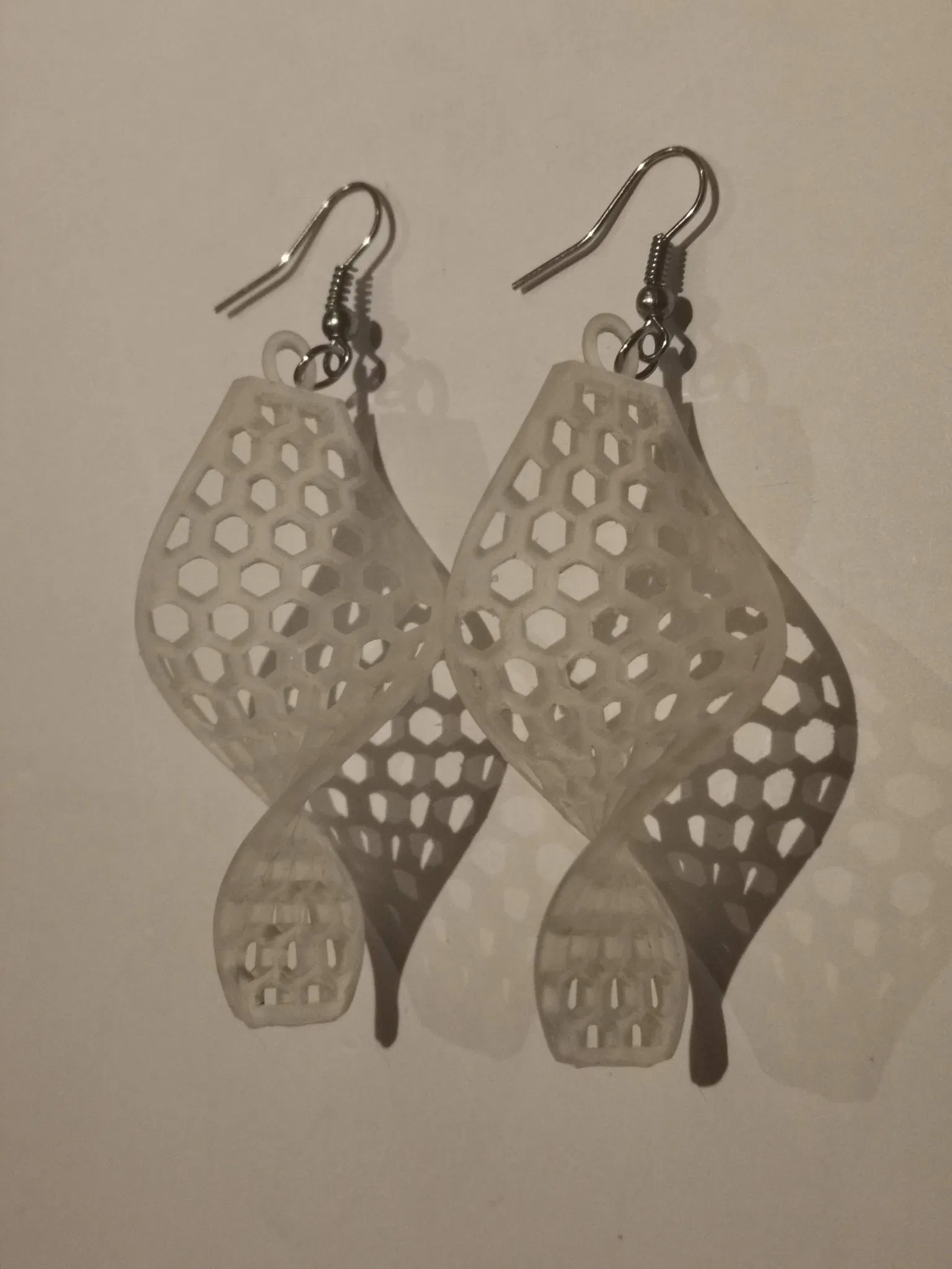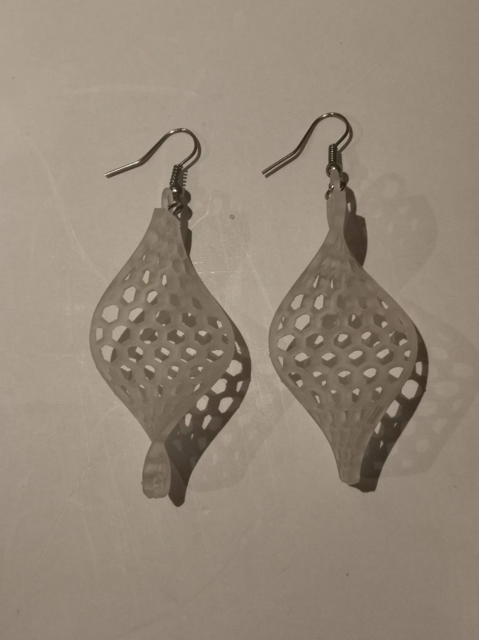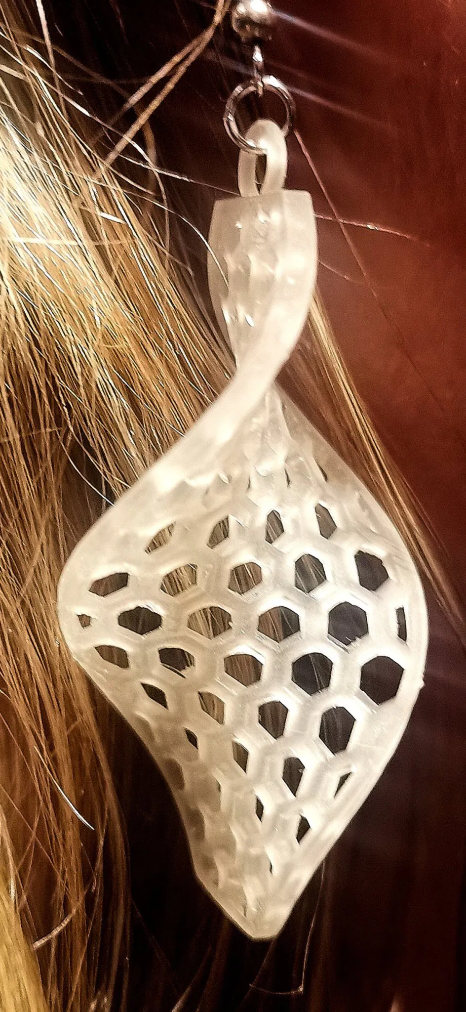 Một mô hình với một mẫu tổ ong xoắn và một chiếc nhẫn trên đầu để treo từ Earhooks