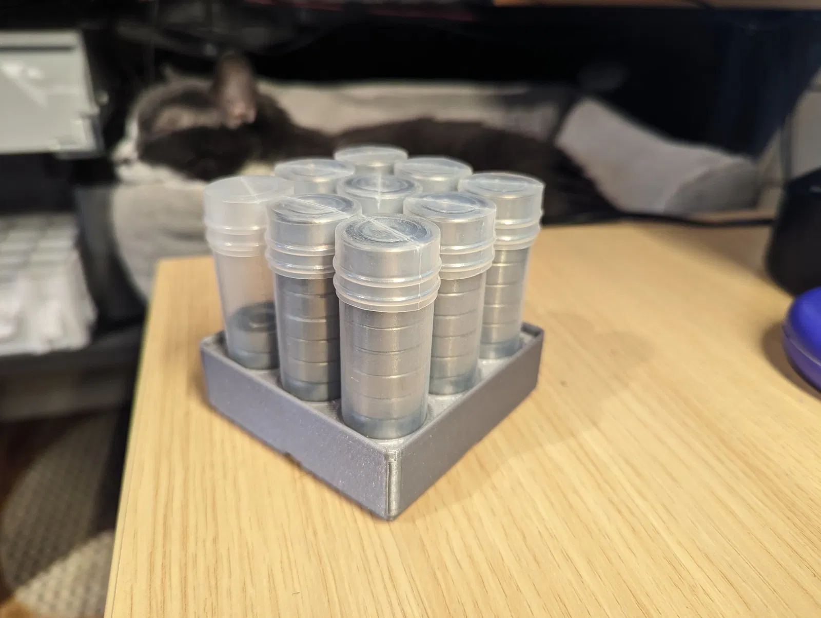 Một khối Gridfinity 4x4 chứa 9 tay áo gồm 608 vòng bi.