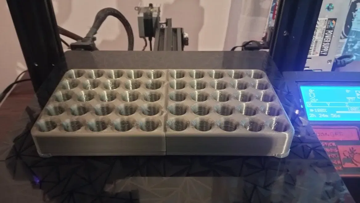Đây là một giá đỡ ống nghiệm mô-đun. Bạn có thể in chỉ một nửa thiết kế và vẫn sử dụng nó. Nếu cần thêm dung lượng, bạn có thể in nửa còn lại và gắn nó vào phần trước đó. Mỗi phần giữ 25 ống nghiệm. Ngoài ra, tôi đã bao gồm chân TPU để có độ ổn định tốt hơn.