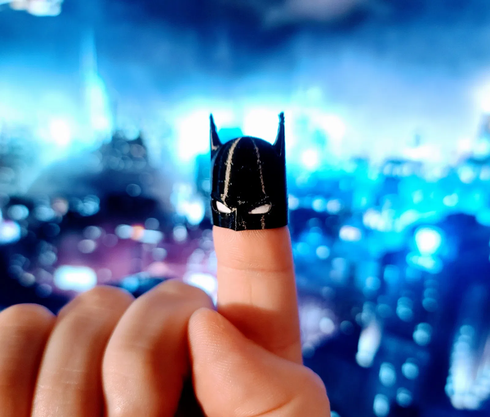 Một bộ trang phục Batman mà bạn có thể bỏ vừa trong túi cho bất kỳ tình huống khẩn cấp nào liên quan đến trang phục. Phù hợp với ngón tay rộng 18mm, có thể điều chỉnh lên hoặc xuống cho phù hợp.