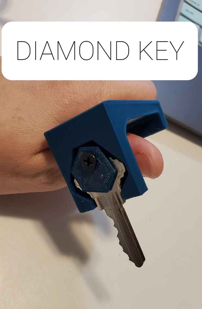 Các tay cầm cho những người bị đau cổ tay hoặc vấn đề về vận động tinh khiến việc cầm nắm và xoay chìa khóa trở nên khó khăn. Ba phiên bản khác nhau: hình oval và hình kim cương phù hợp với hai loại chìa khóa phổ biến, và một cái được yêu cầu bởi một người bạn có chìa khóa quá khổ cho lớp học của cô ấy. Có một tay cầm và một miếng đệm, và bạn vặn chúng lại với chìa khóa được kẹp giữa miếng đệm và tay cầm. Hai chìa khóa thông thường sử dụng cùng một miếng đệm nhưng chìa khóa lớp học khổng lồ cần một miếng đệm riêng. Tôi đã sử dụng một con vít và đai ốc M2.5.