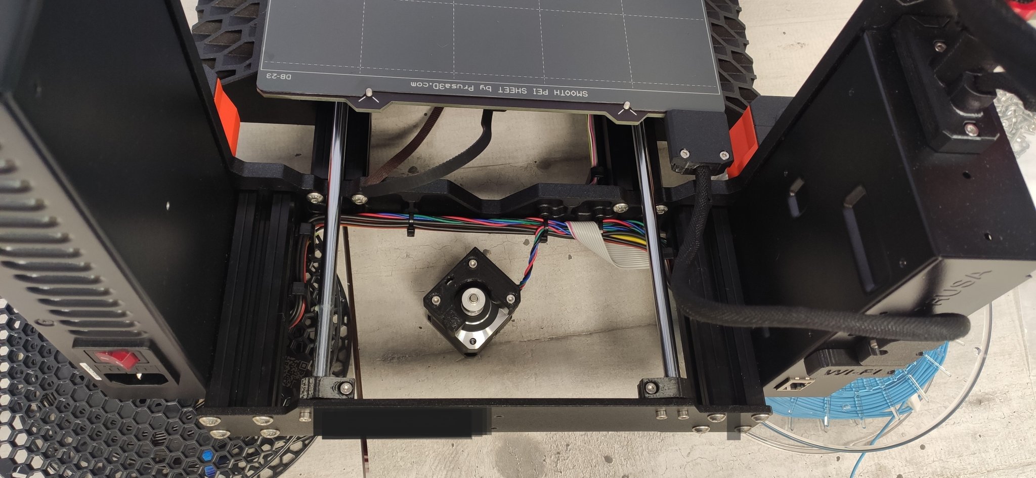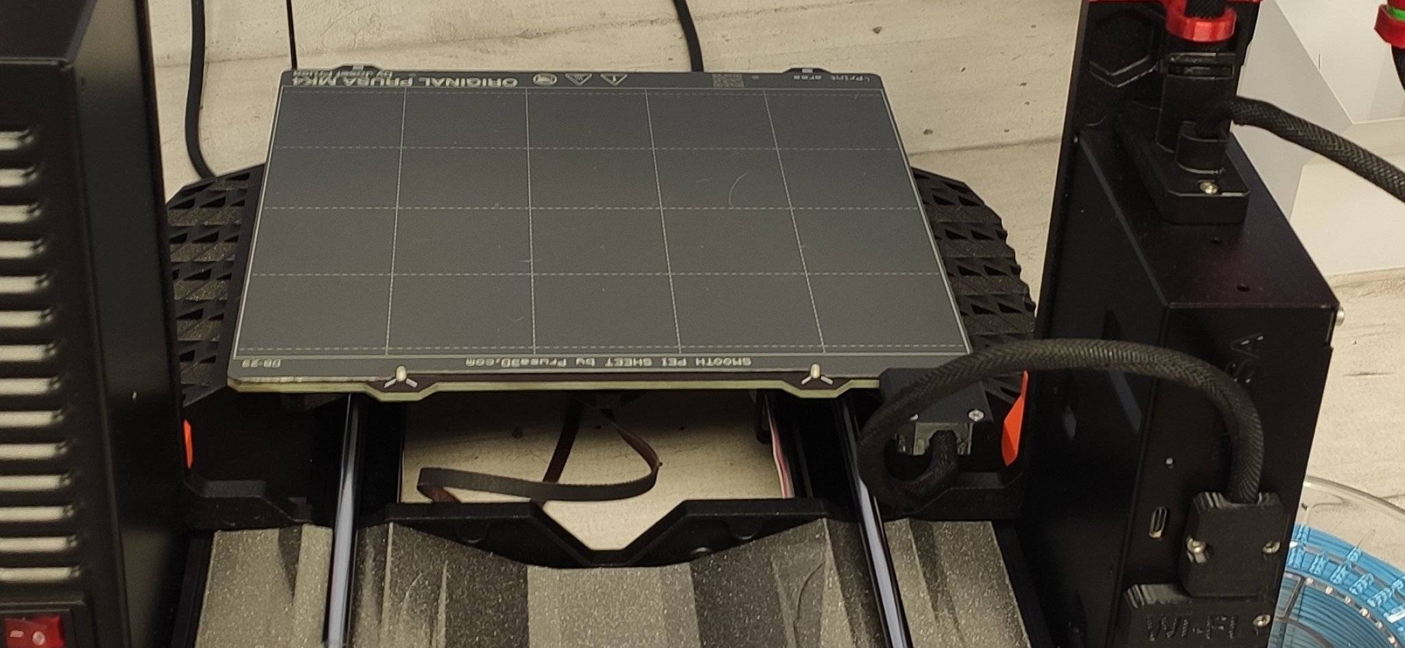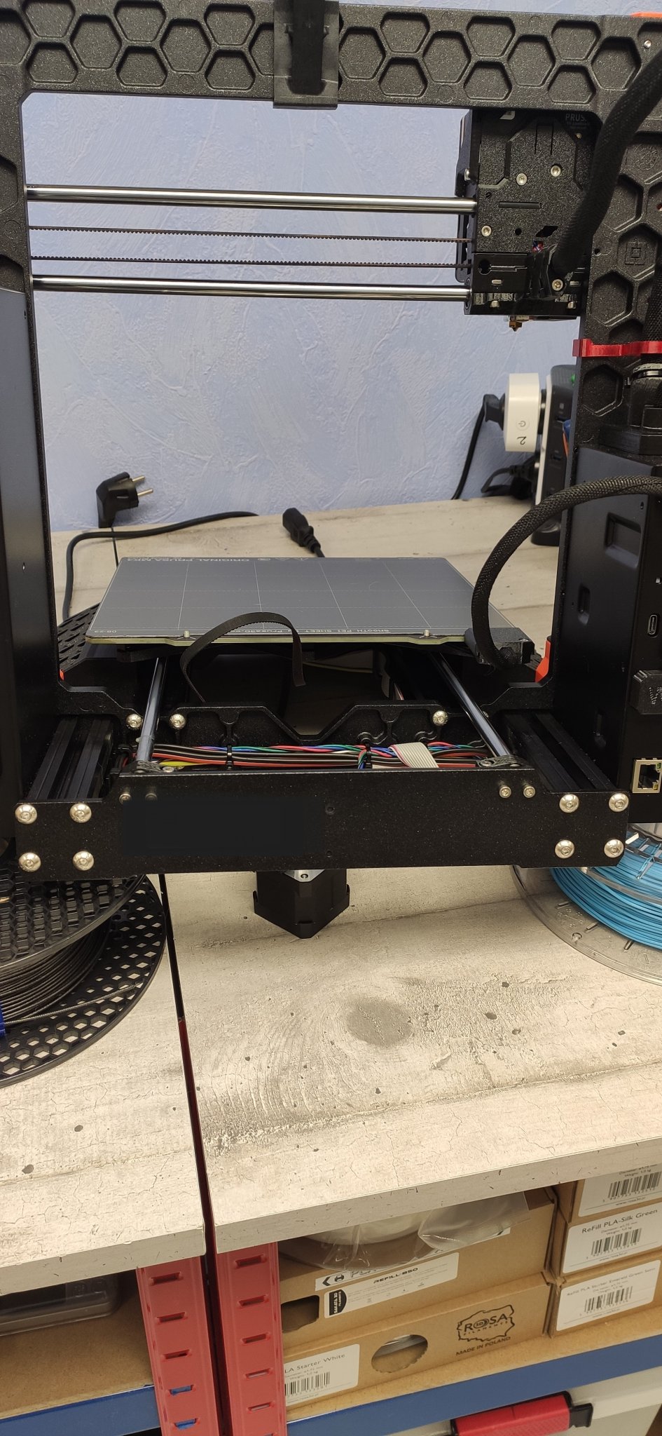 CHÚ Ý, nếu bạn chưa đặt Khay trung tâm/giữ dây cho Prusa MK4