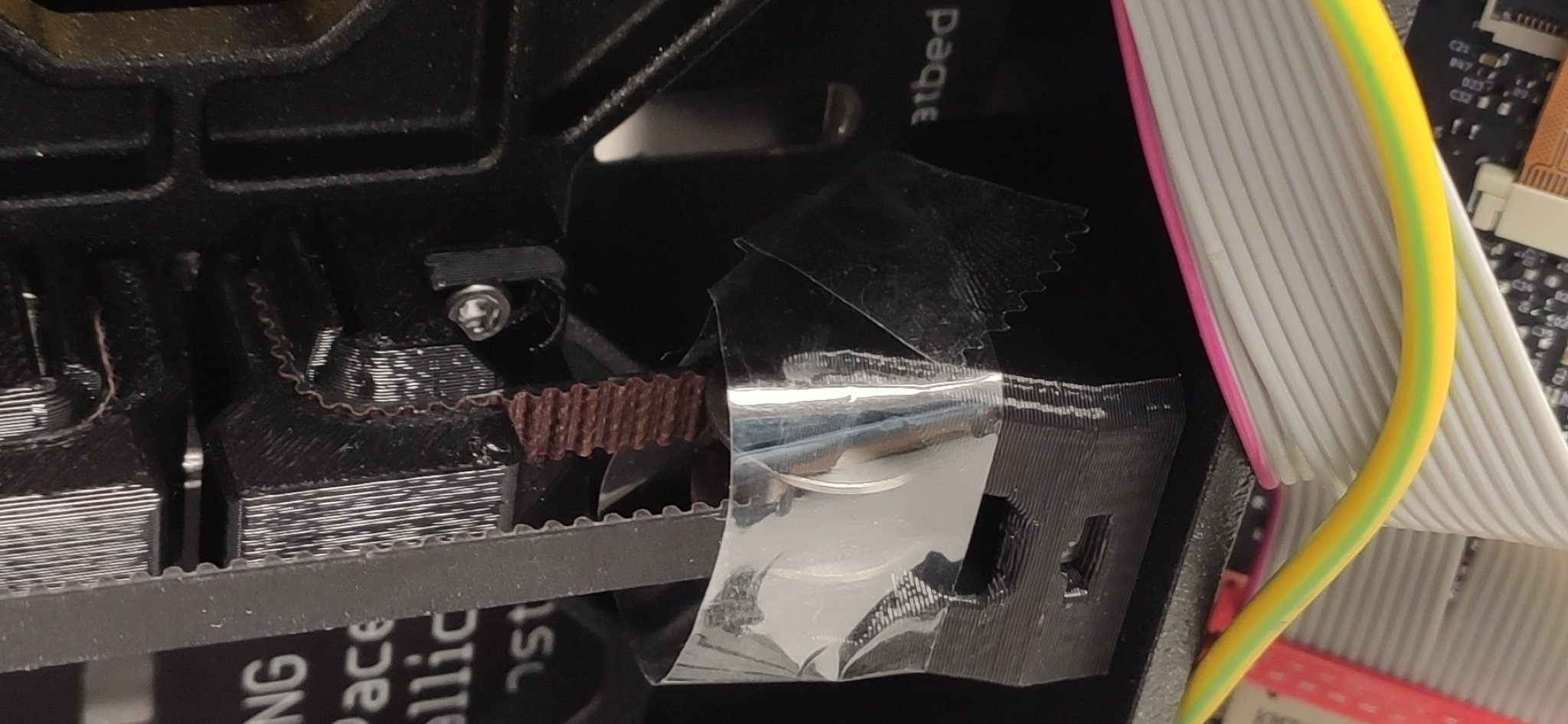 Cần phải bảo vệ ròng rọc trả lại của bàn bên phía màn hình bằng băng dính hoặc dây buộc, nếu không nó sẽ rơi và bạn sẽ phải đặt lại đúng vị trí khi lắp lại.