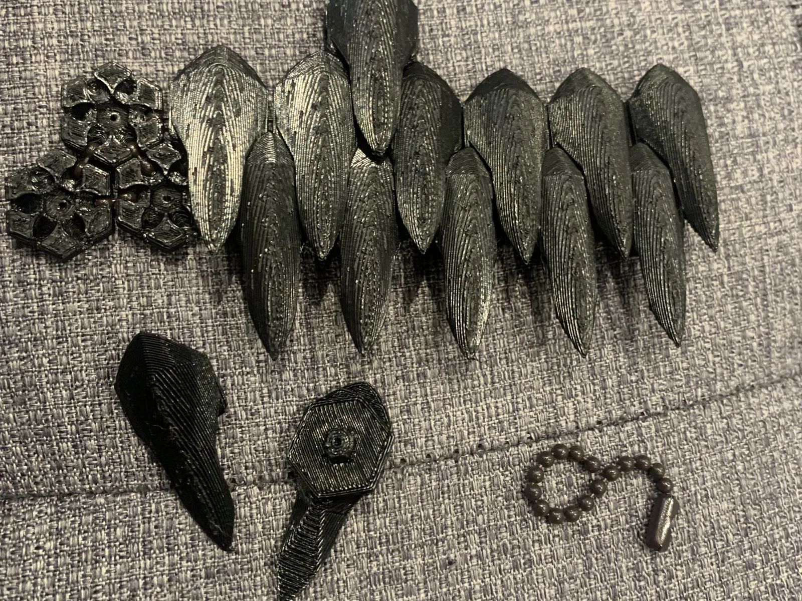 Những vảy này được thiết kế để được vặn vào các liên kết hex chuỗi mà tôi đã thiết kế để tạo hiệu ứng giáp vảy. Vít được sử dụng là vít gỗ đầu phẳng #2 x 3/8