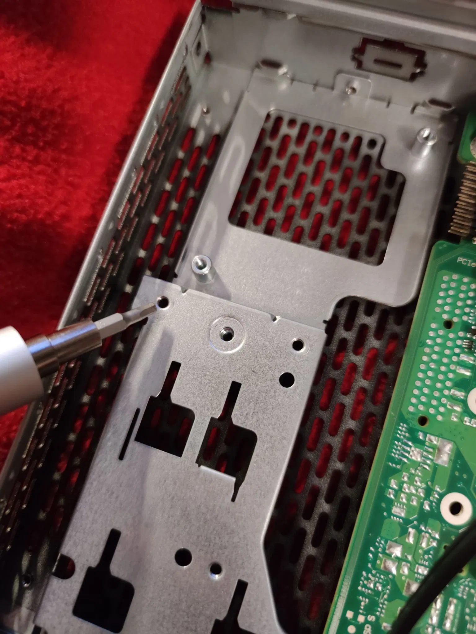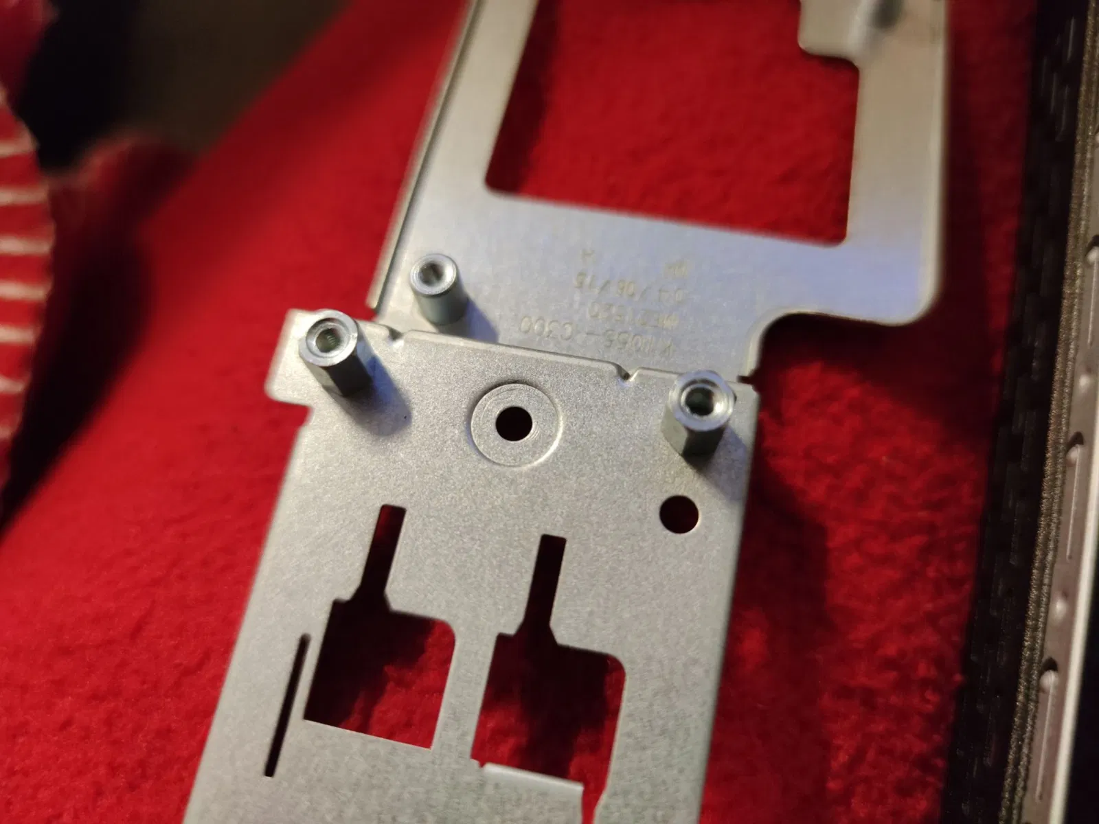 - Gắn SSD vào giá đỡ bằng ba con ốc M3. M3x6 cũng nên hoạt động, nhưng bạn cần kiểm tra xem chiều dài này có phù hợp với SSD cụ thể của bạn hay không.