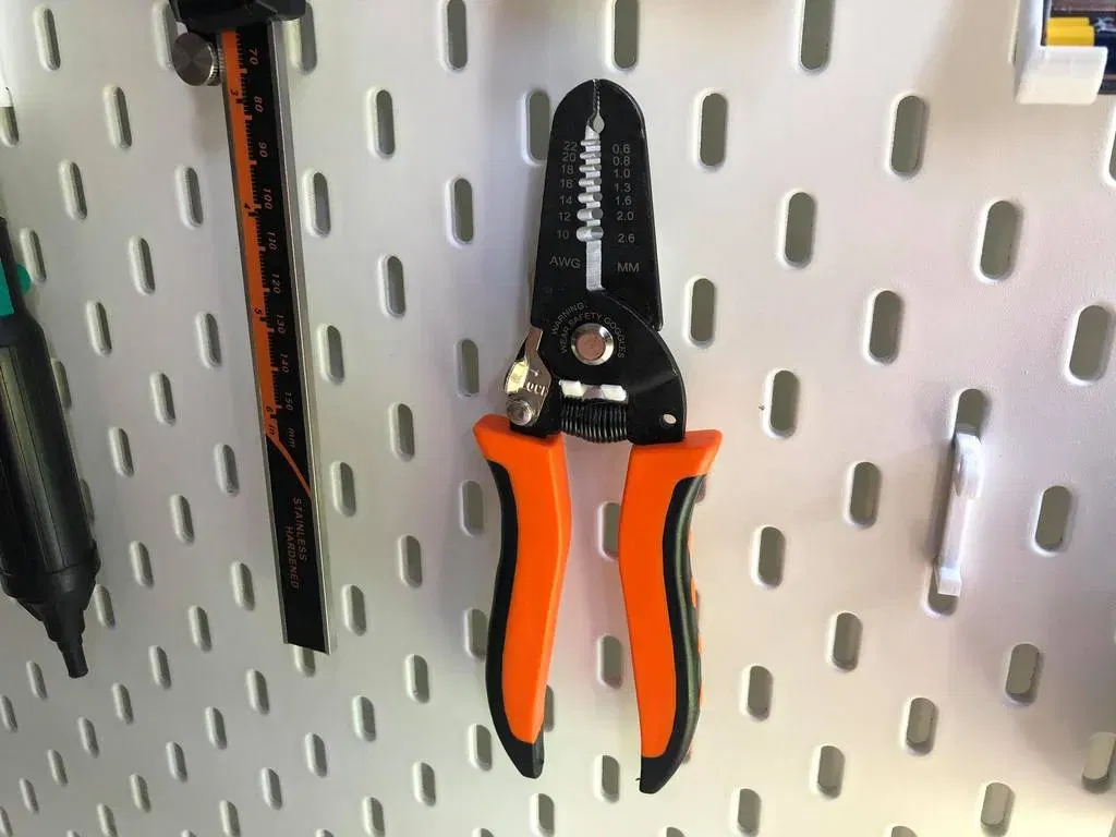 Đây là giá đỡ kìm b stripping mà tôi thiết kế. Món đồ này được lấy cảm hứng từ Bộ sưu tập SKADIS của IKEA bởi CSD_Salzburg, nó sử dụng cùng một hệ thống móc (tôi đã bao gồm móc). Xem bộ sưu tập các giá đỡ Skadis khác của IKEA mà tôi đã làm.