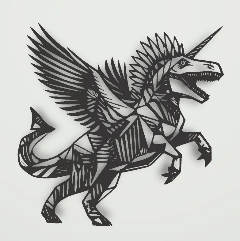 Dinocorn Wall Art: Một sự pha trộn quyến rũ của khủng long và kỳ lân trong một thiết kế hình học. Hoàn hảo để thêm sự hay thay đổi cho bất kỳ phòng.