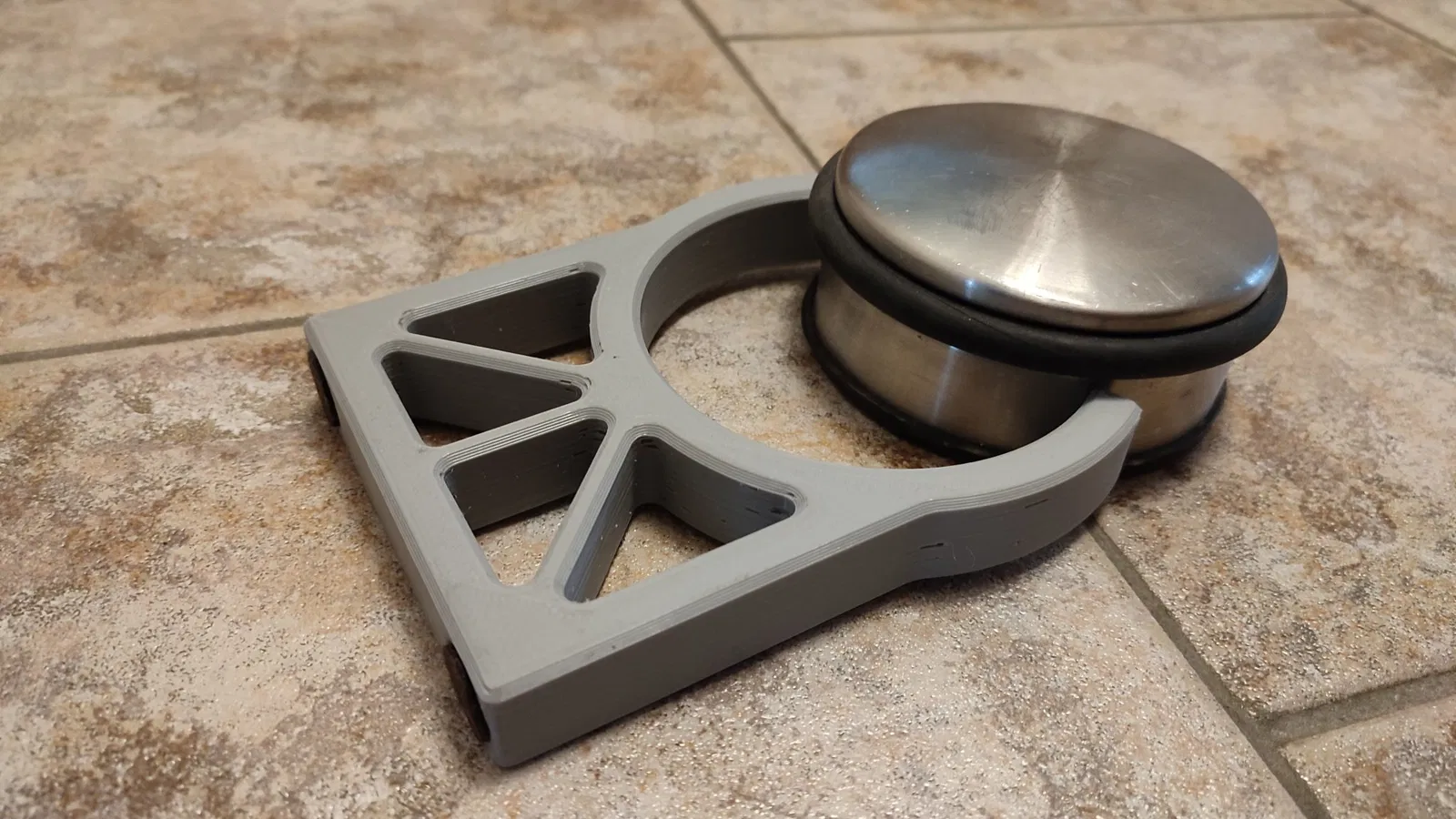Trong nhà của chúng tôi, chúng tôi gặp vấn đề rằng cánh cửa vào phòng khách đập vào bộ tản nhiệt với tay nắm và như bạn có thể thấy trong những bức ảnh, vấn đề này đã tồn tại từ khi ngôi nhà được xây dựng.