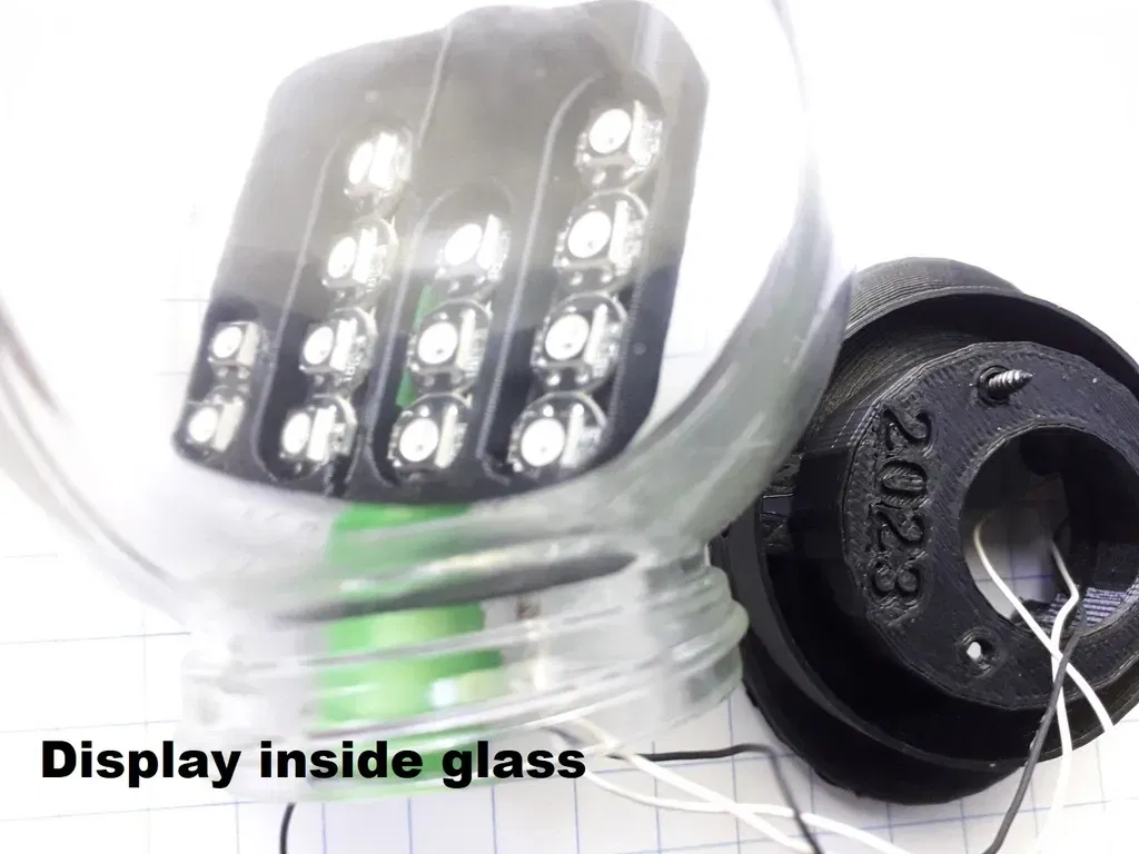 Đồng hồ trong đồng hồ nhị phân chai được xây dựng trong thùng chứa thủy tinh Pepco/Poundland SKU 34705101. Nó có 13 mảnh WS2812B