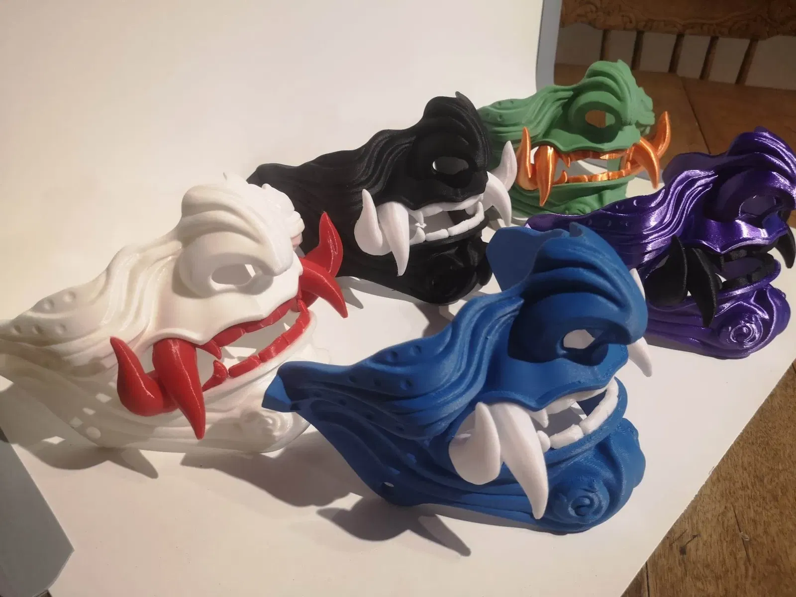 Đây là một phiên bản Remix của mẫu mặt nạ Samurai tuyệt vời Model 3 bởi flioink. Tôi đã tách các chiếc răng và nanh để chúng có thể được in với các màu khác nhau trên máy in thông thường.